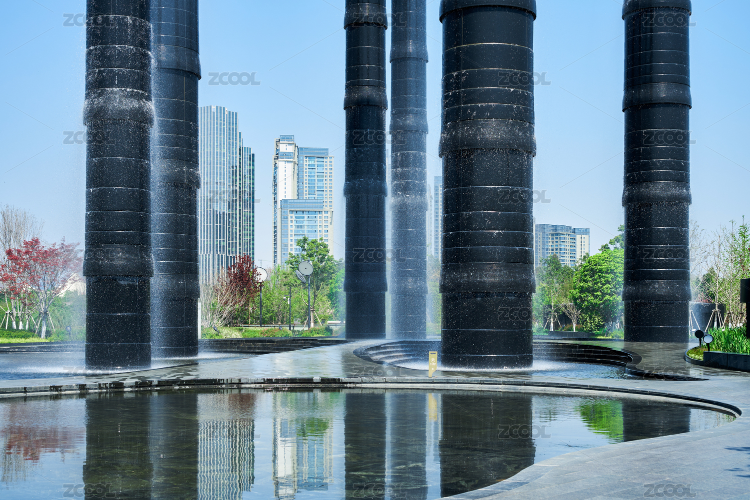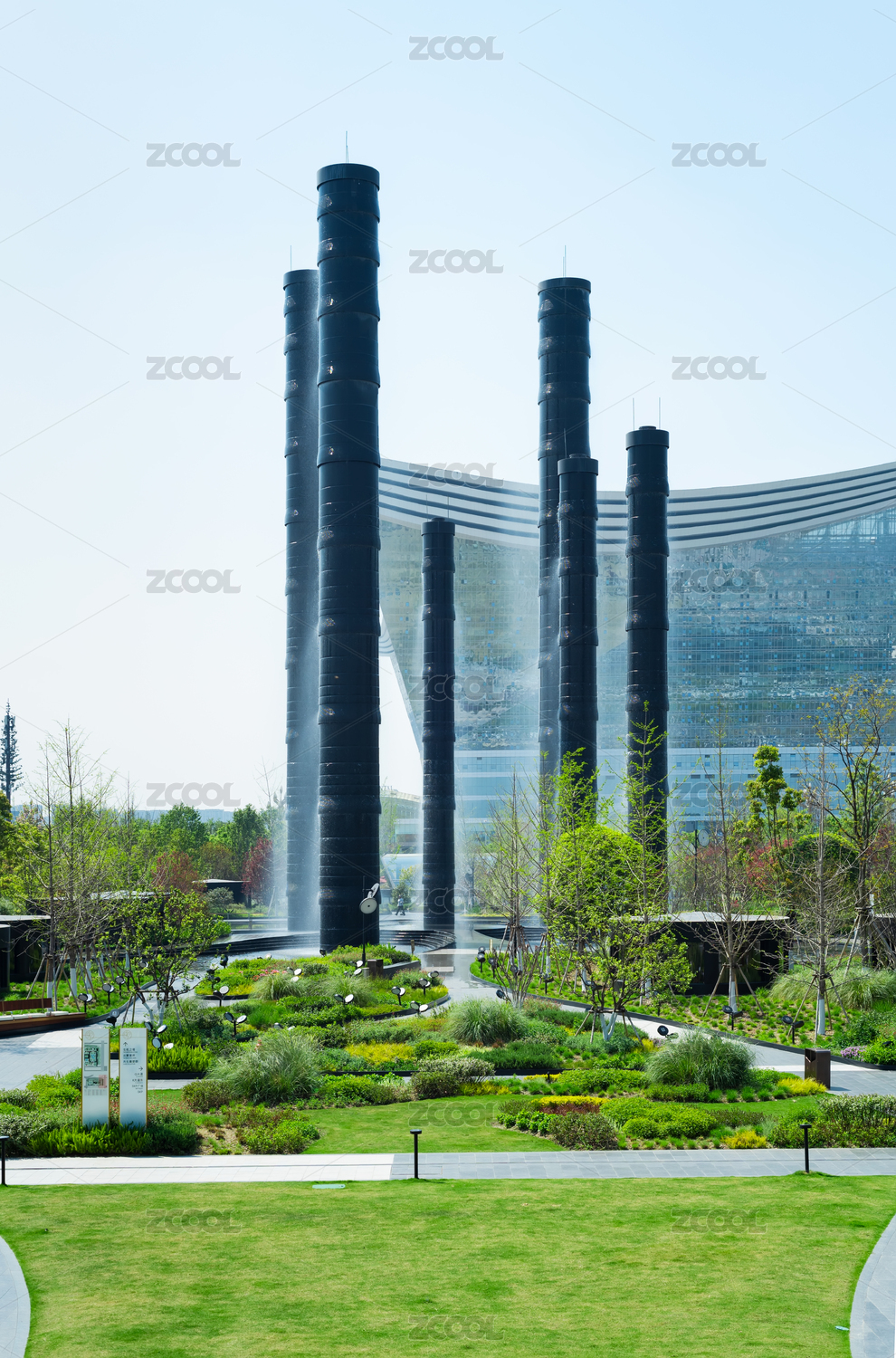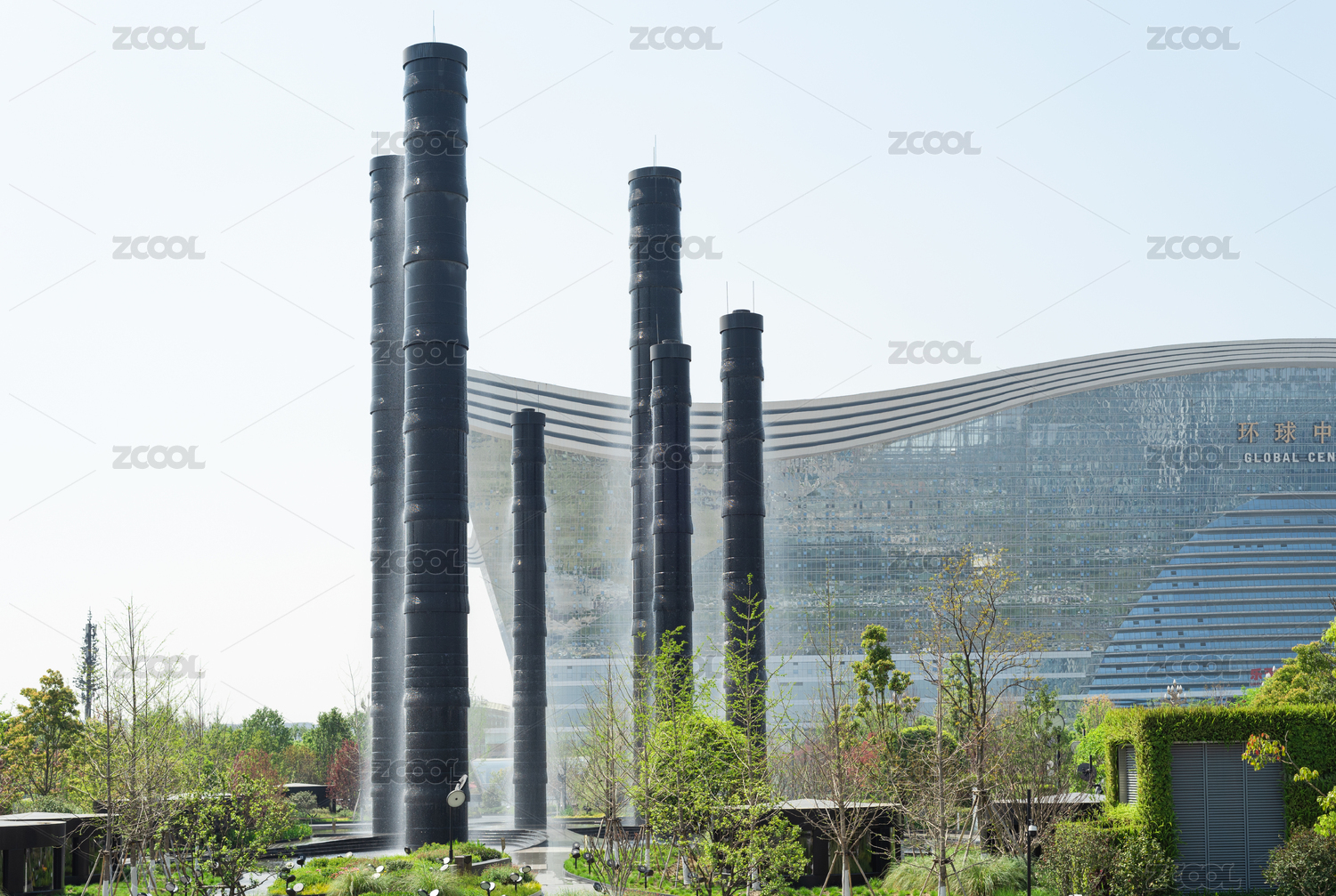 早晨成都SKP商場大型戶外裝置生機之塔