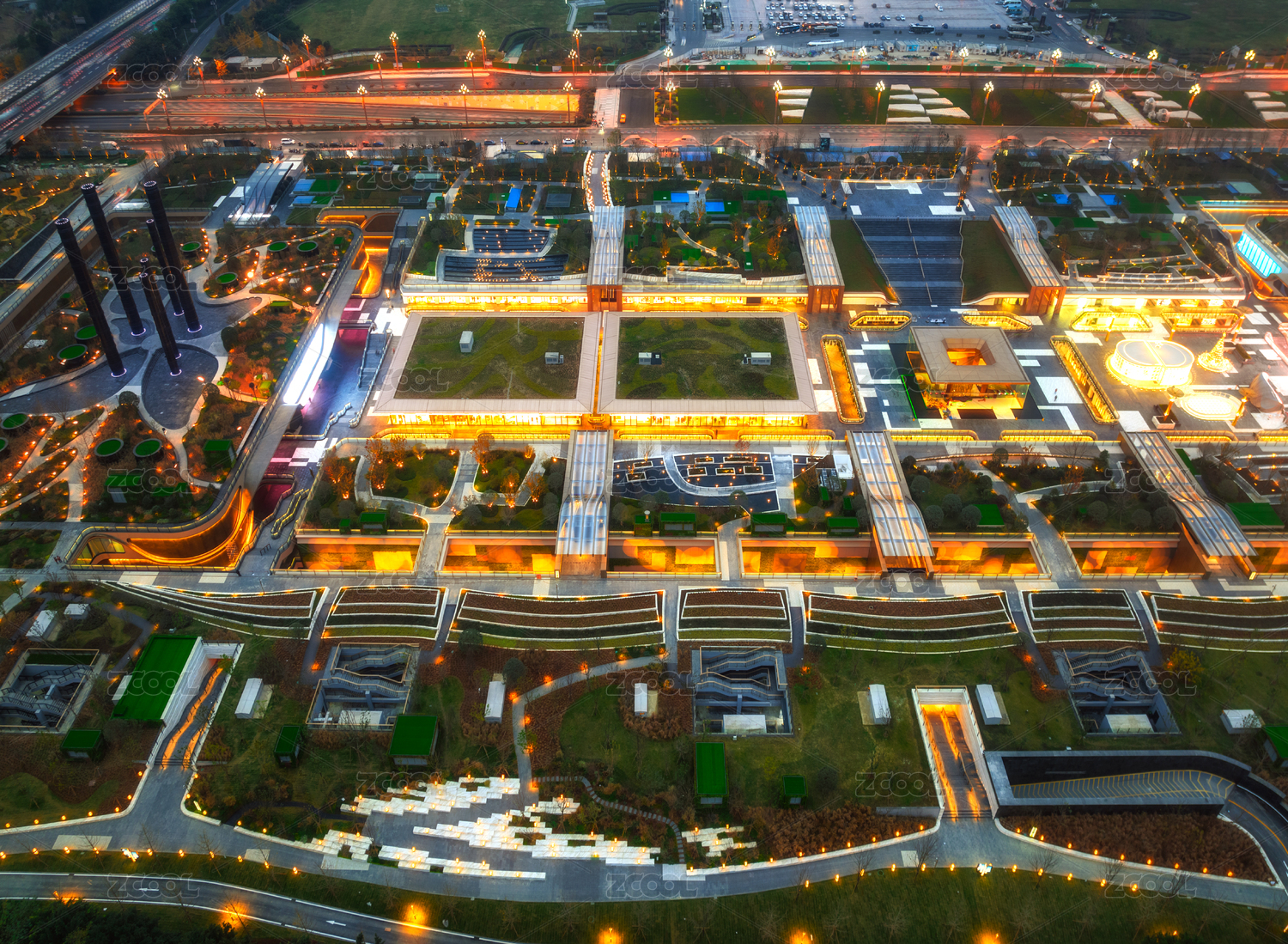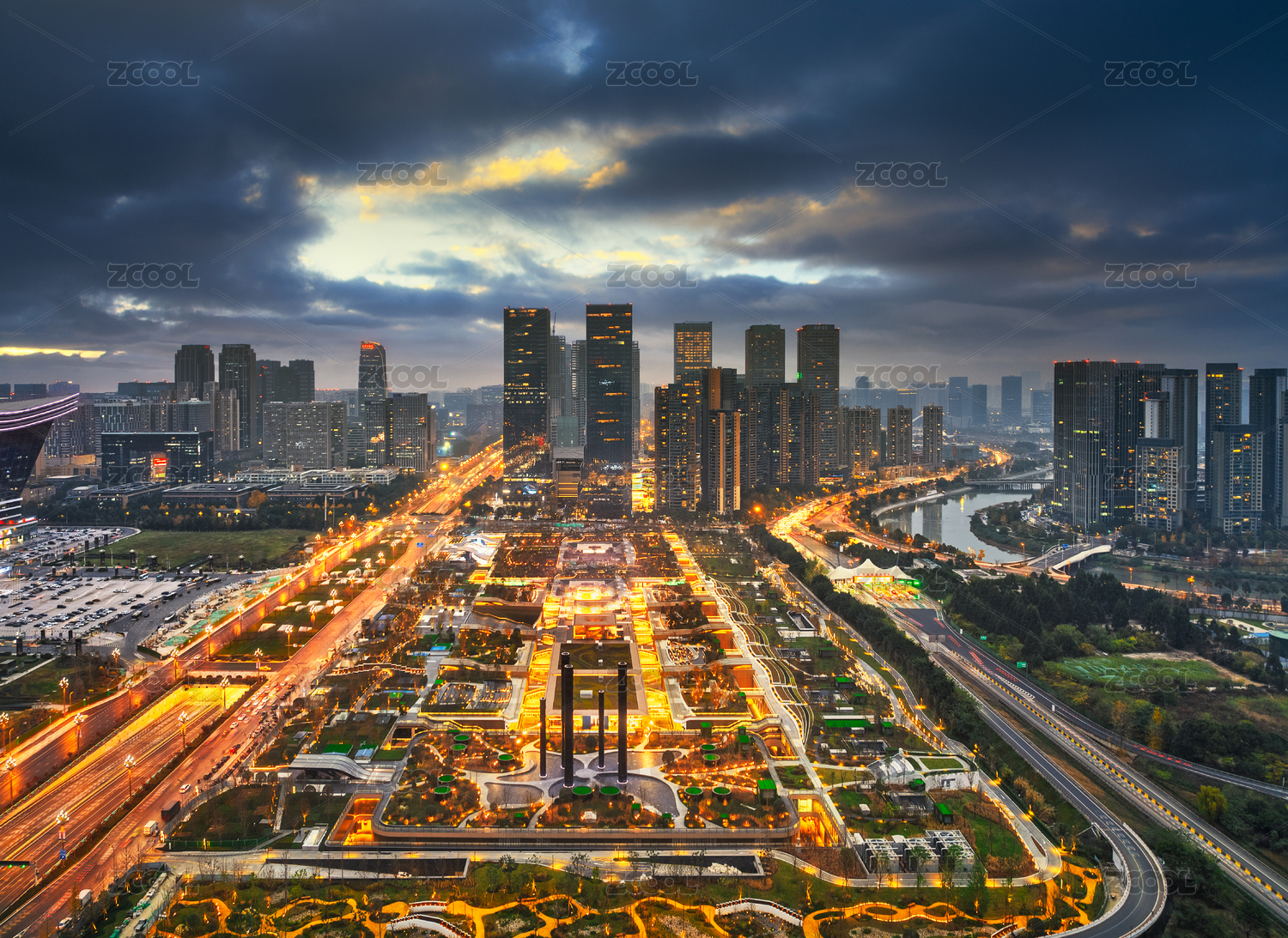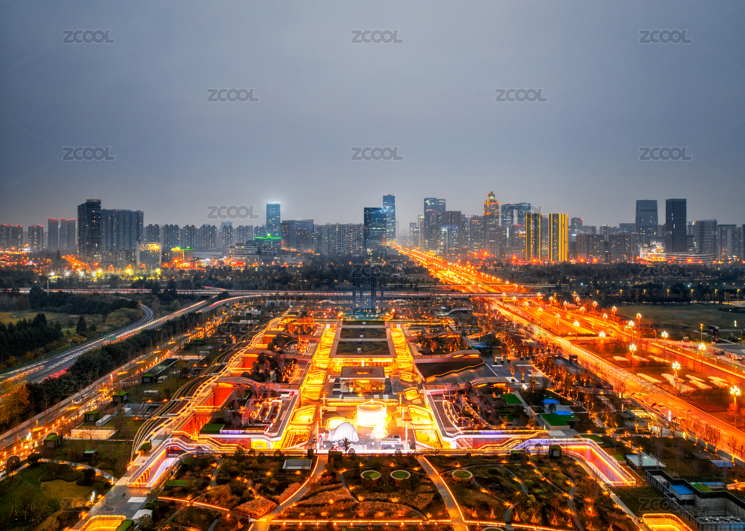 中國成都交子公園商圈成都SKP夜景航拍圖