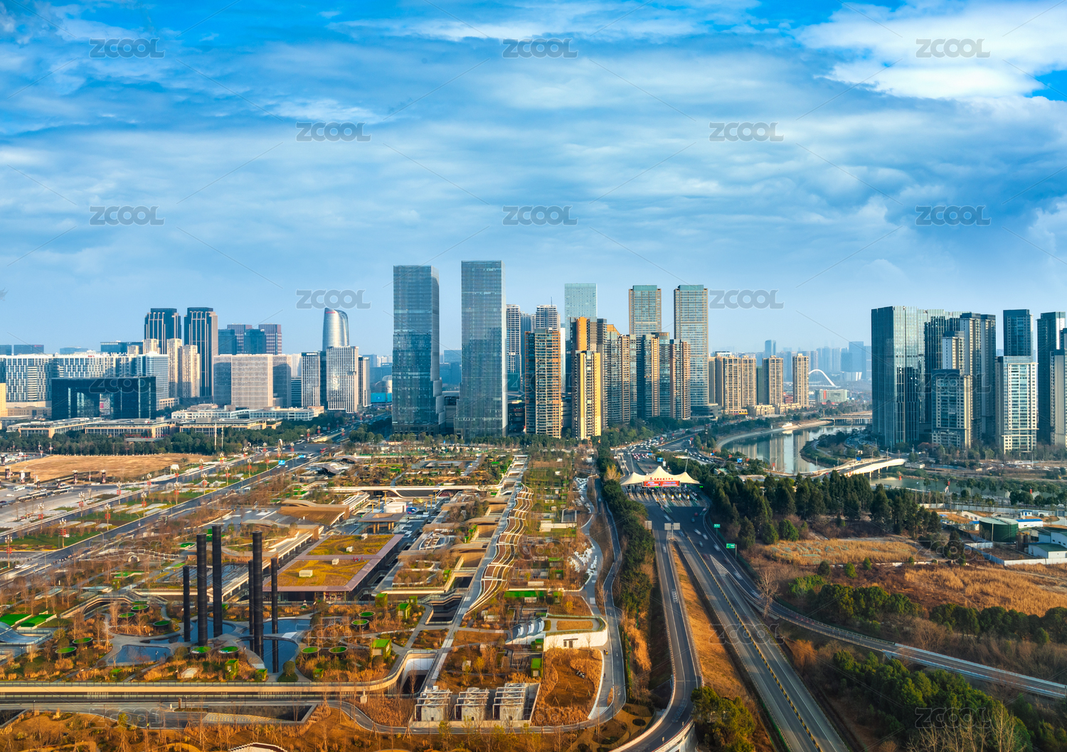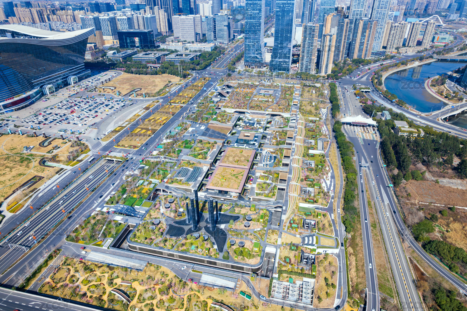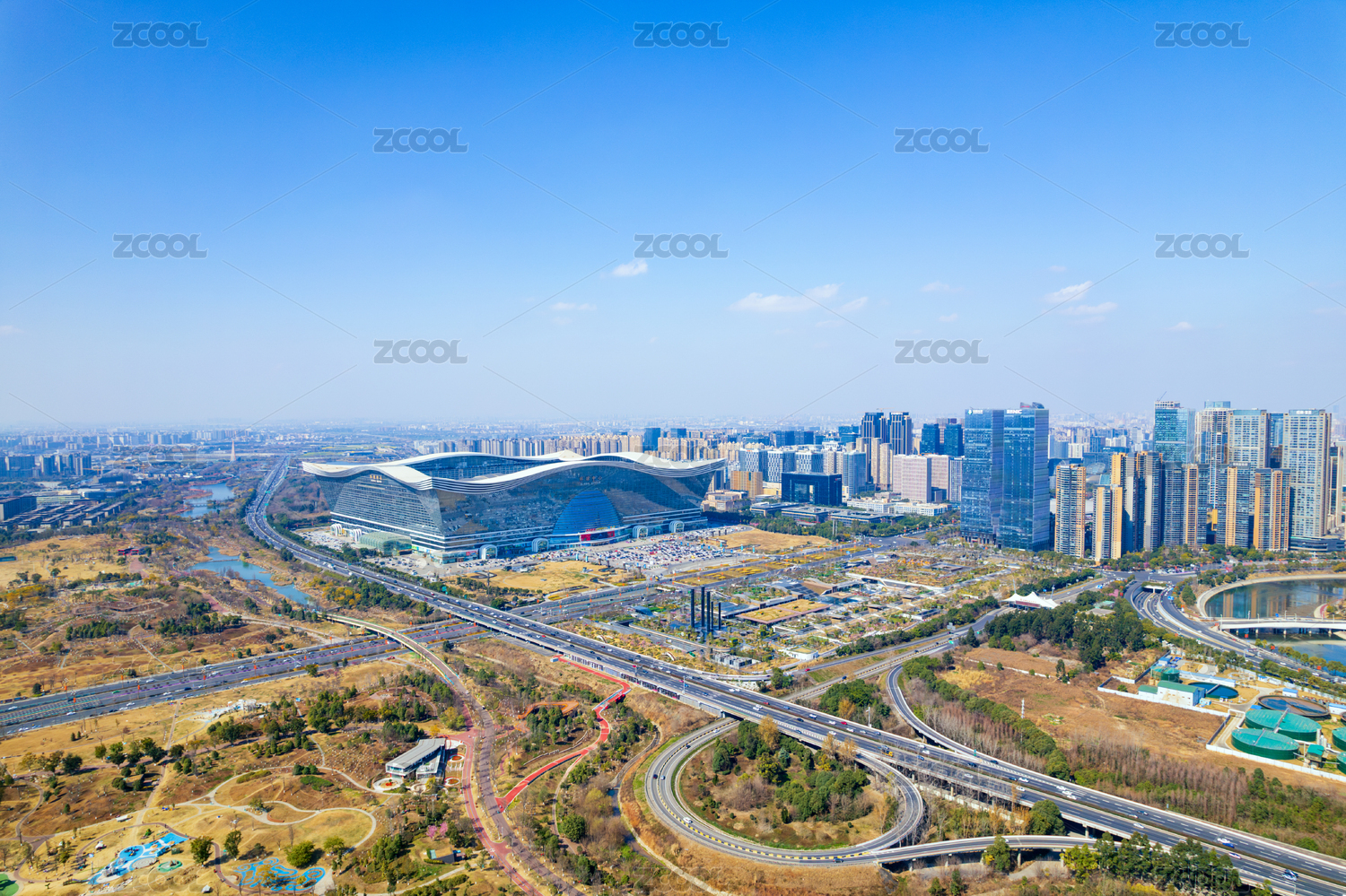 成都高新區(qū)環(huán)球中心成都SKP桂溪公園航拍