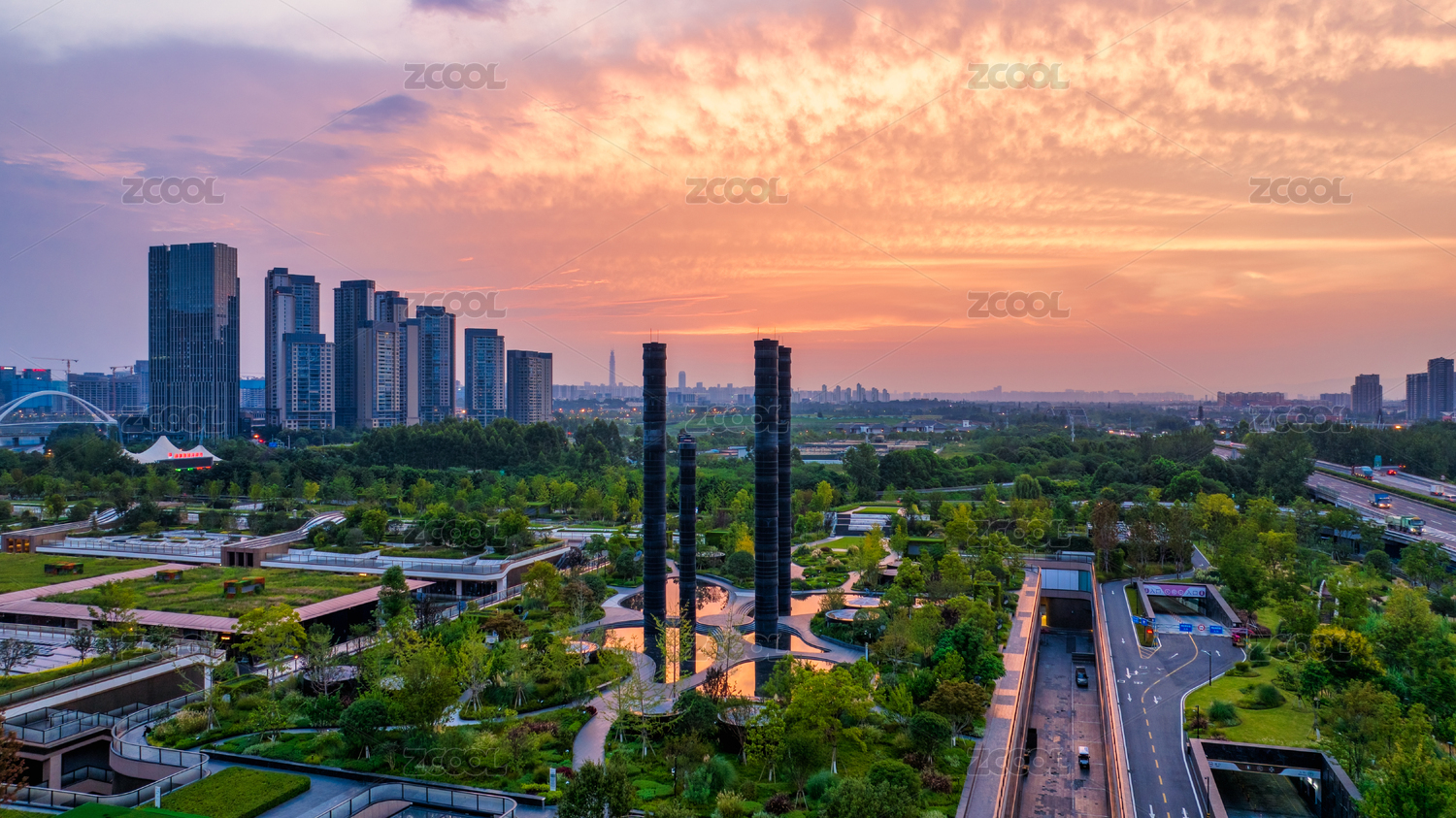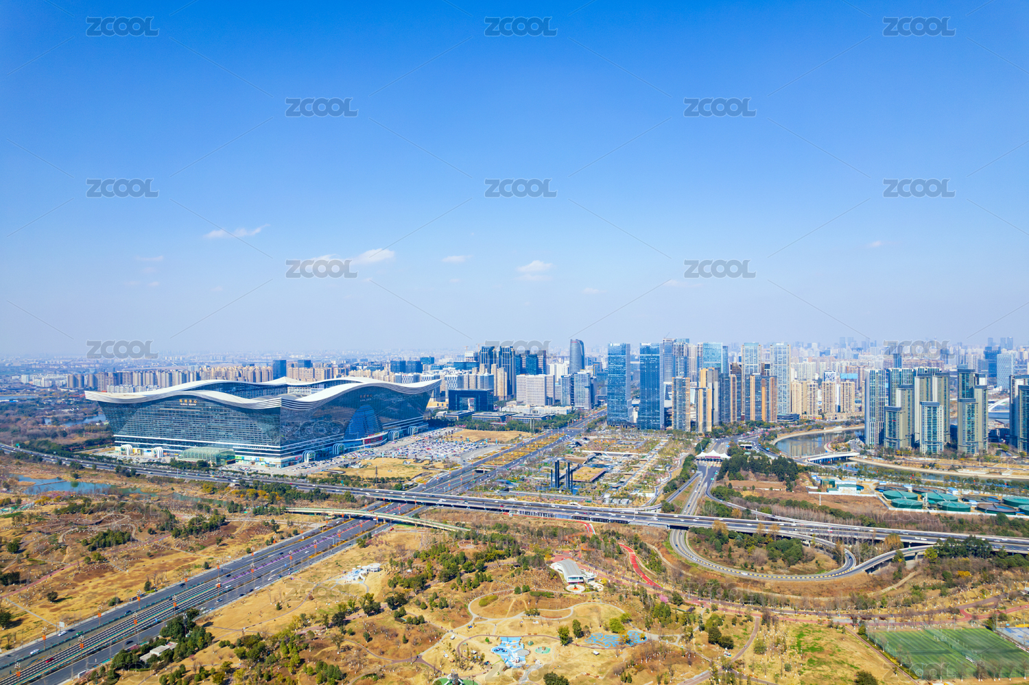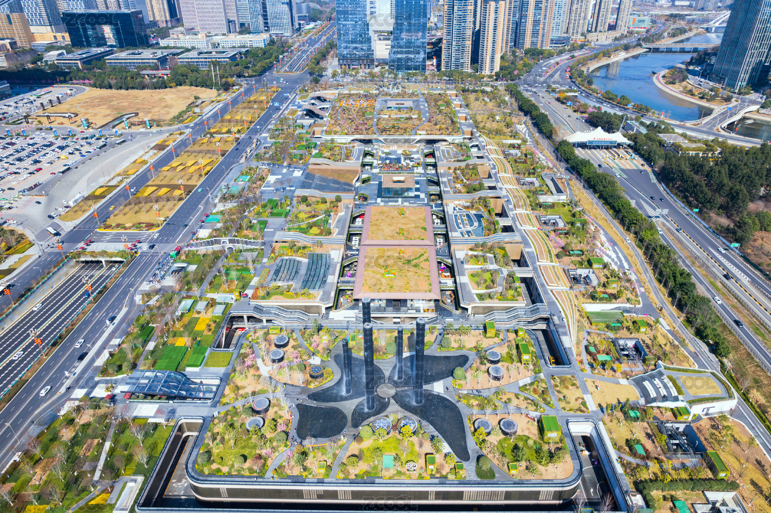 成都高新區(qū)環(huán)球中心成都SKP桂溪公園航拍
