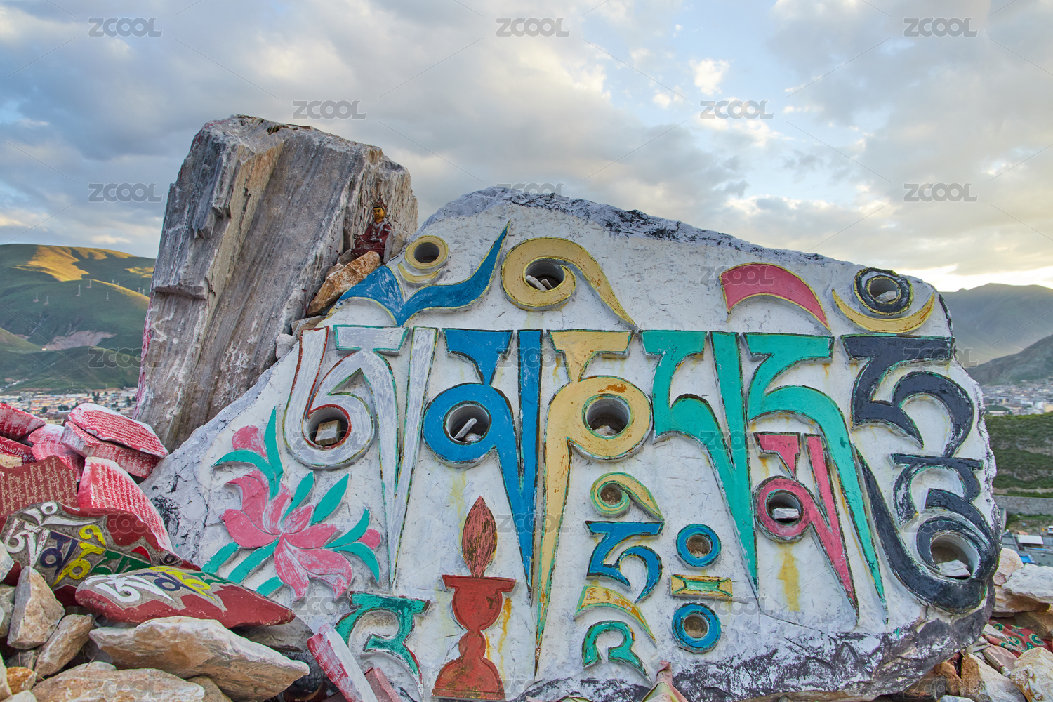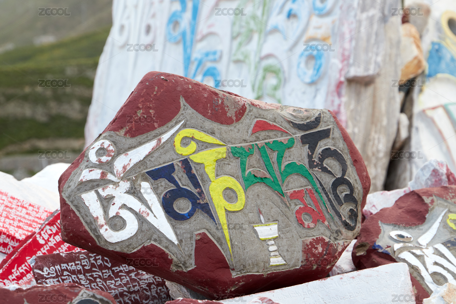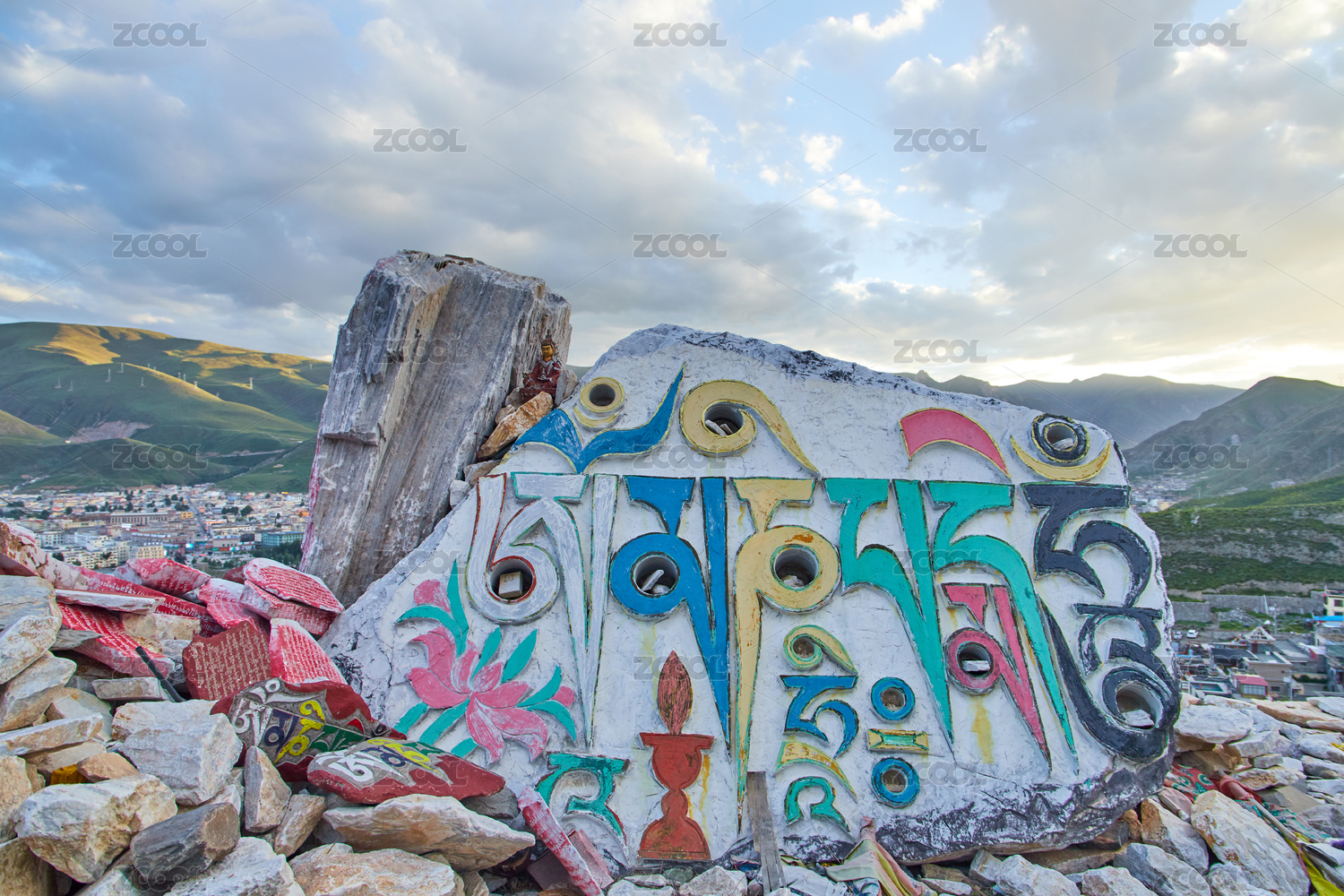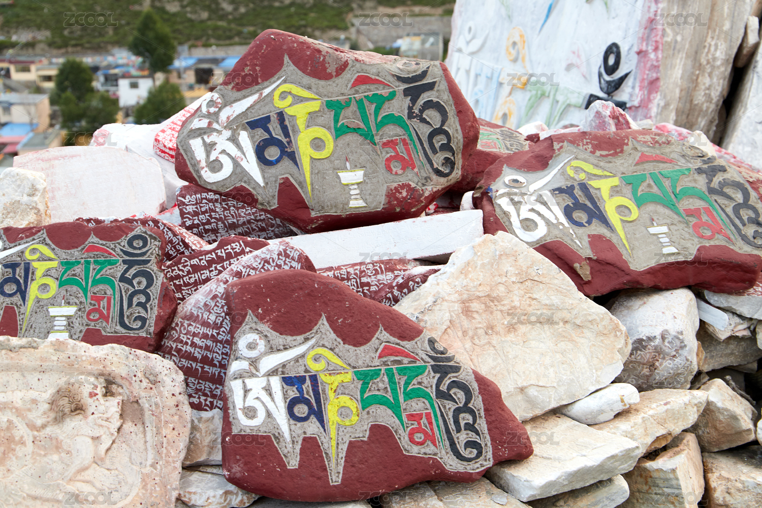 夏季青海省玉樹市結(jié)古鎮(zhèn)結(jié)古寺的嘛呢石堆