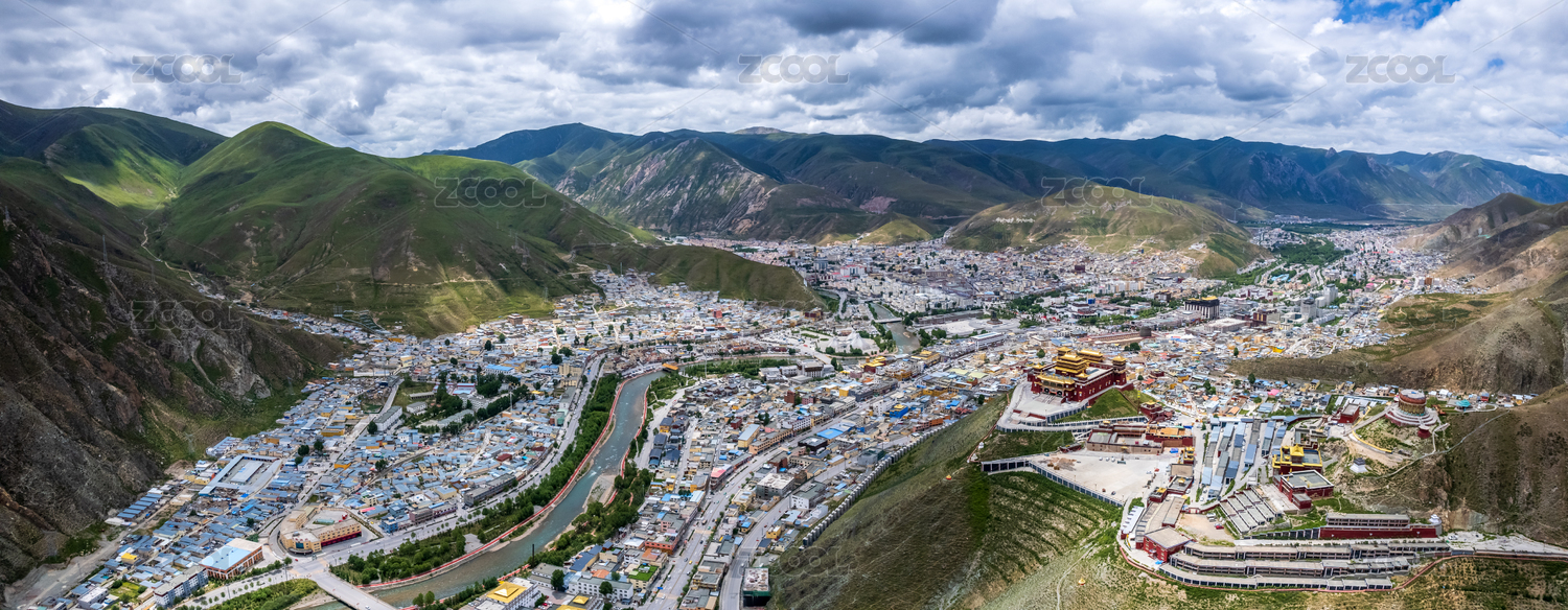 中國青海玉樹城市結(jié)古寺風(fēng)光航拍