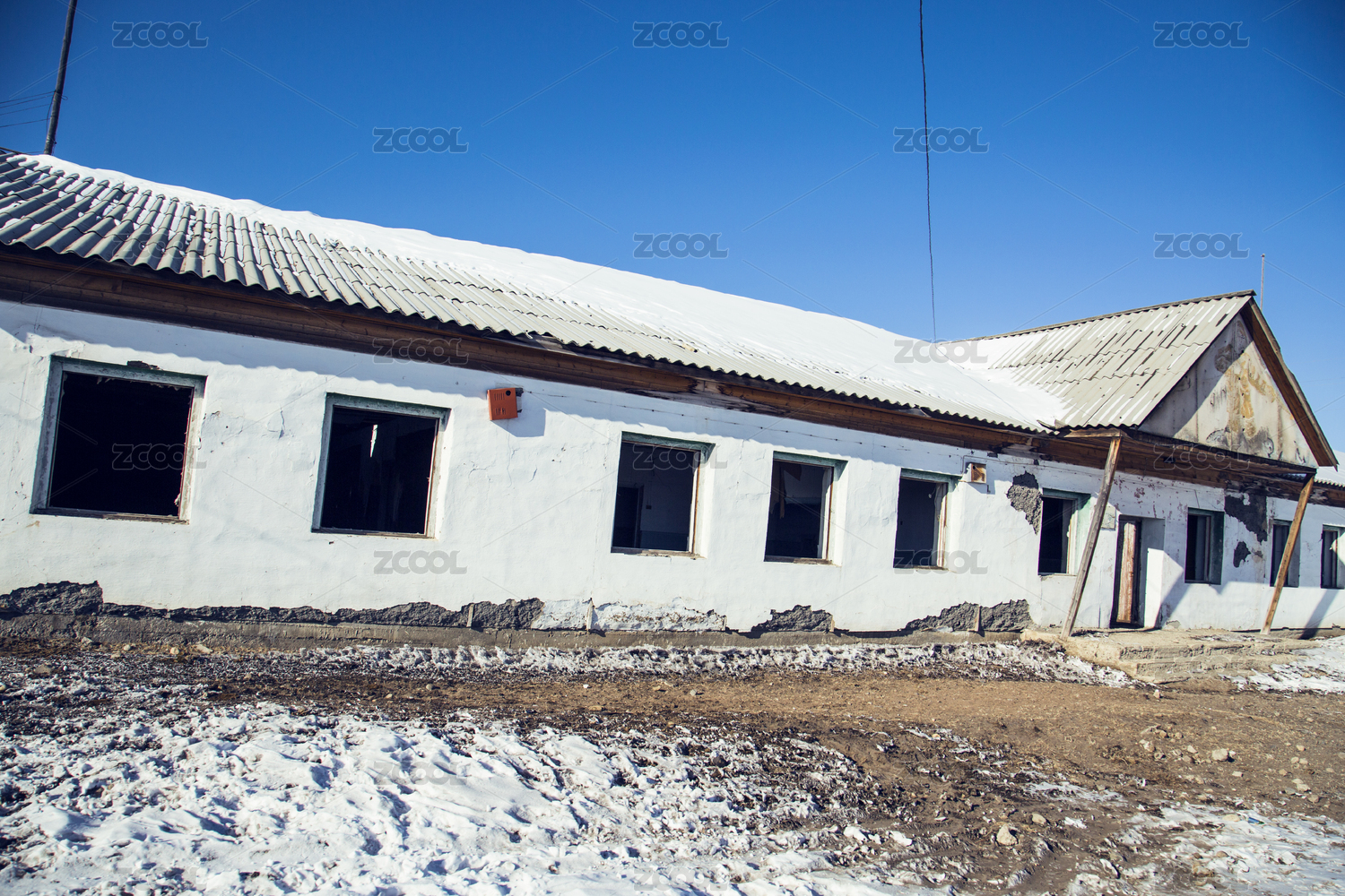 冬天雪地里 奧利洪島小鎮(zhèn) 五顏六色的房子