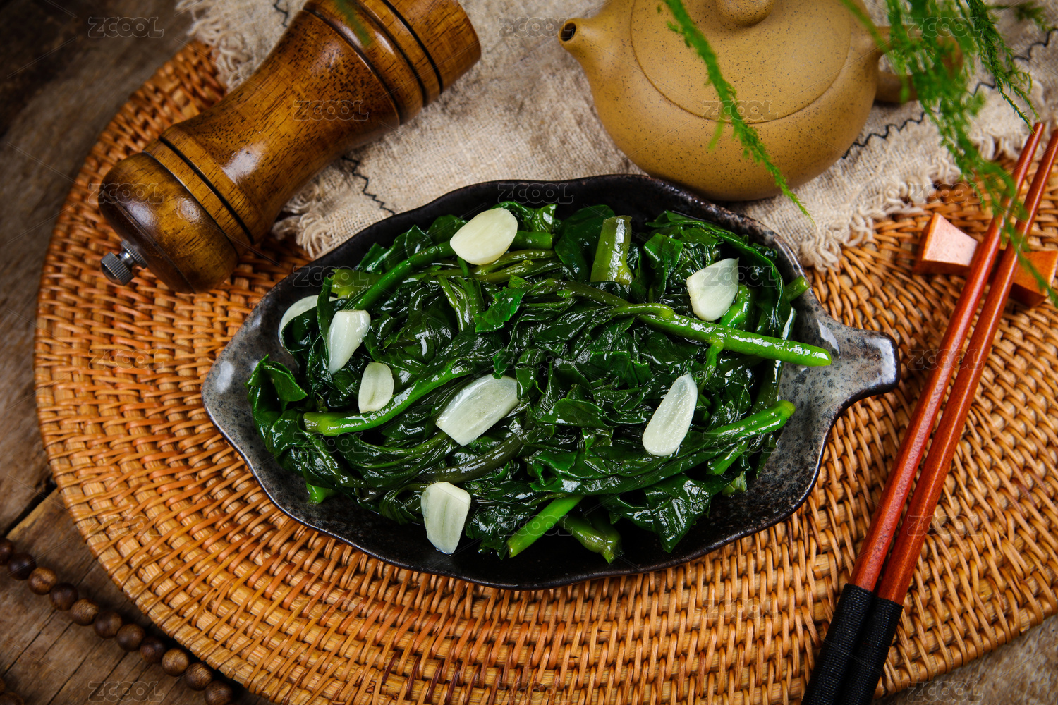 快餐菜肴素炒木耳菜