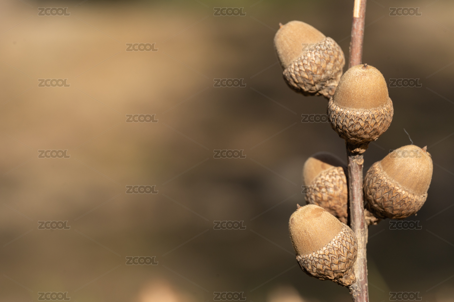 枝條上一串橡果居右左側(cè)留白