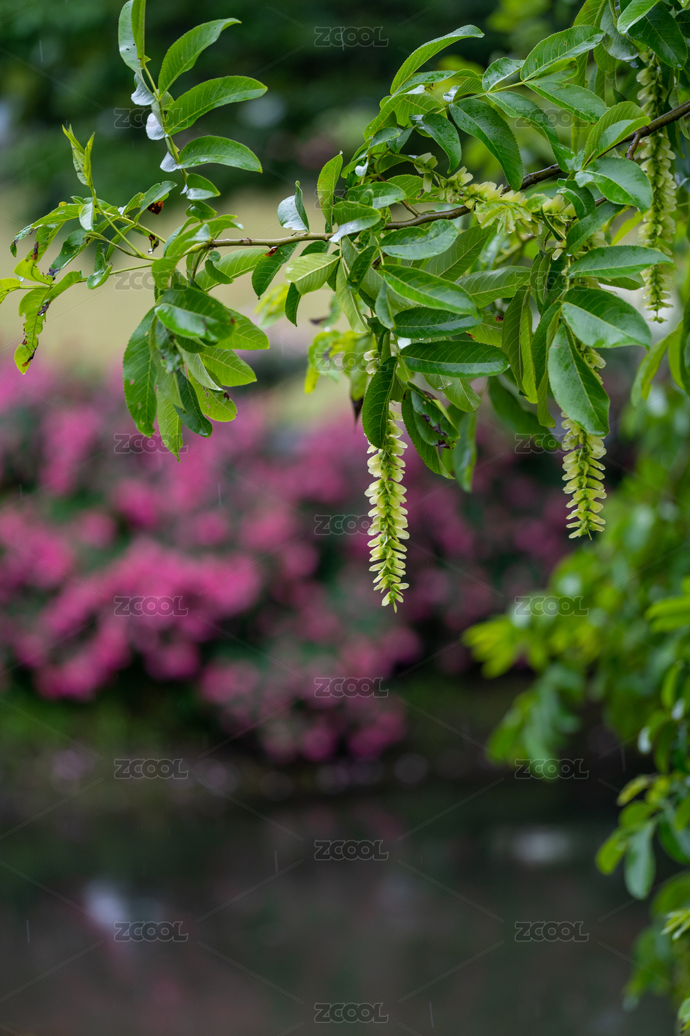 水邊一串楓楊的小翅果特寫(xiě)像風(fēng)鈴