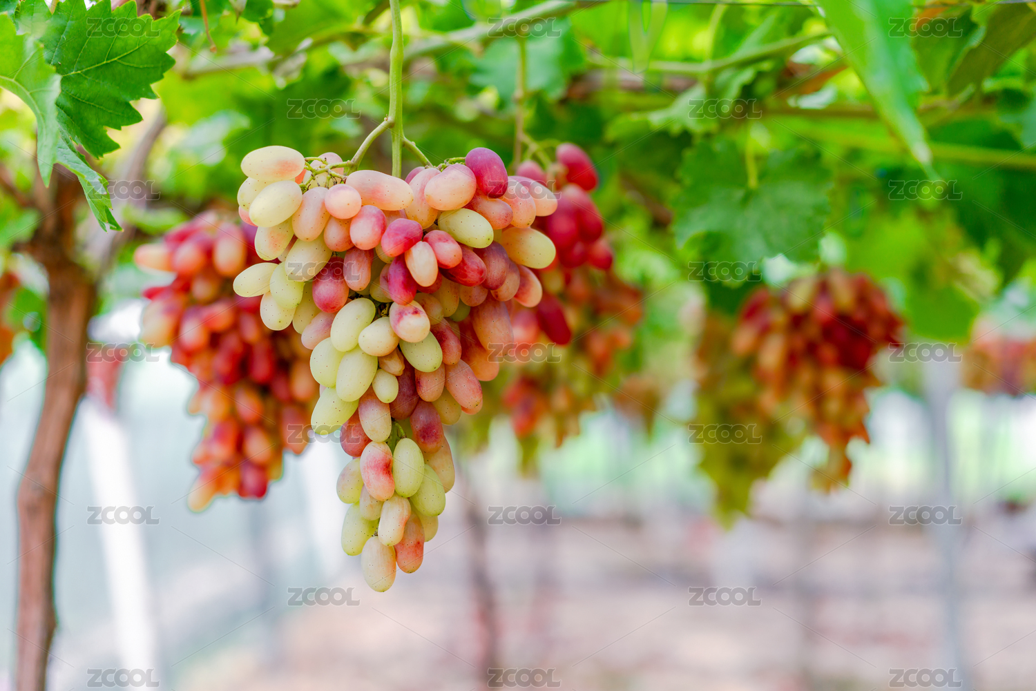 葡萄園里一串串成熟的葡萄美人指紅提子