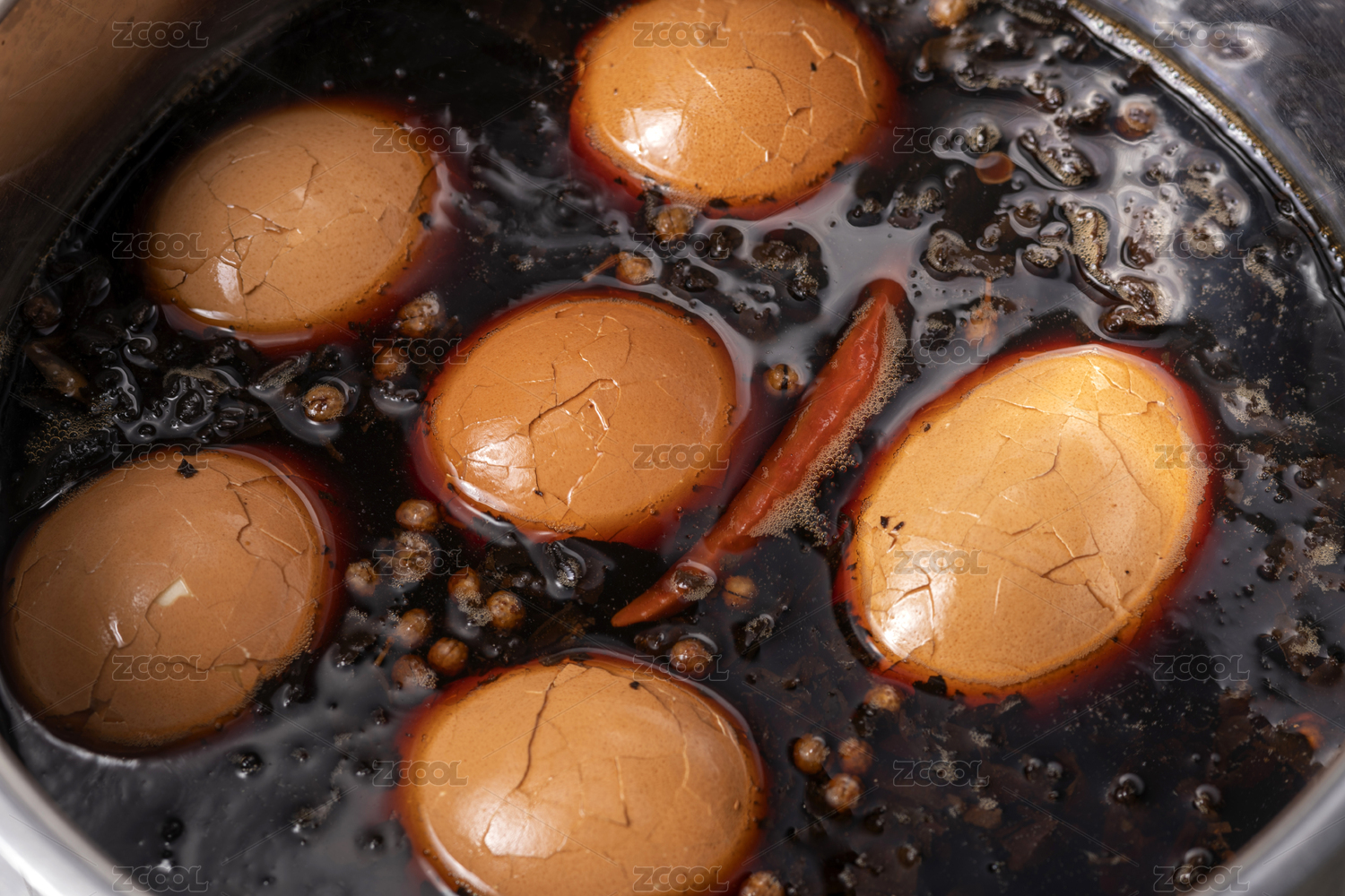 正在沸水中煮制的傳統(tǒng)小吃茶雞蛋特寫
