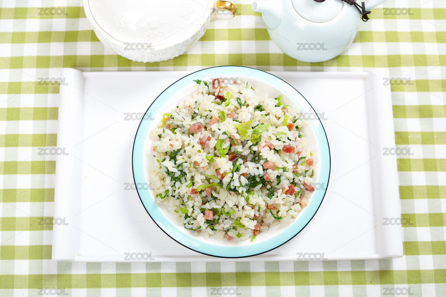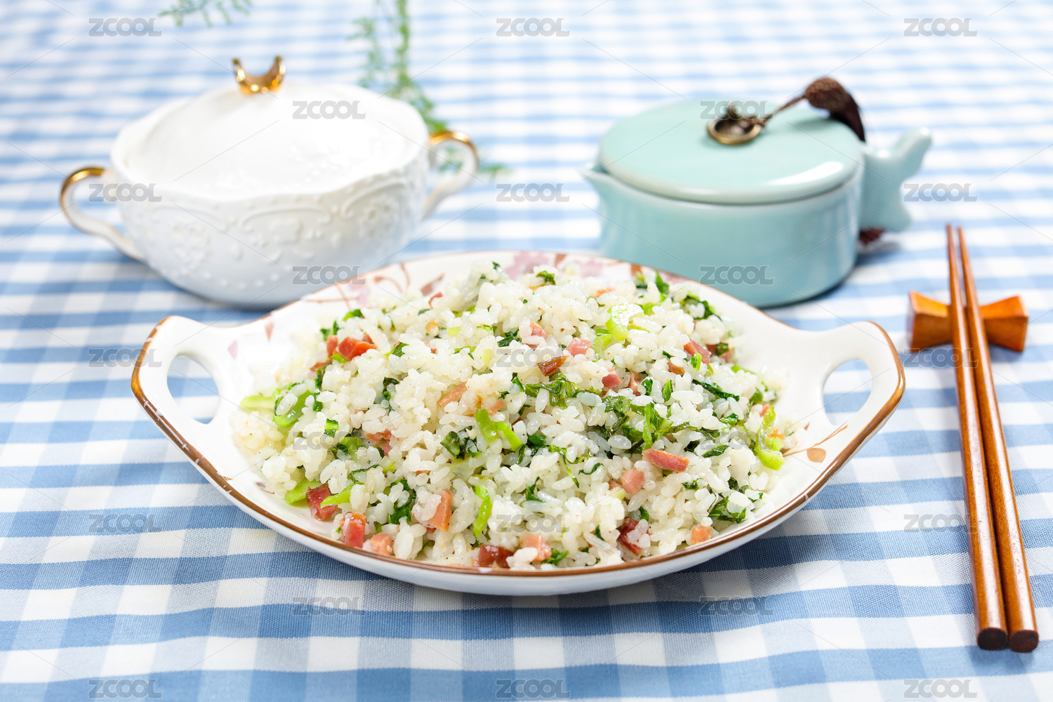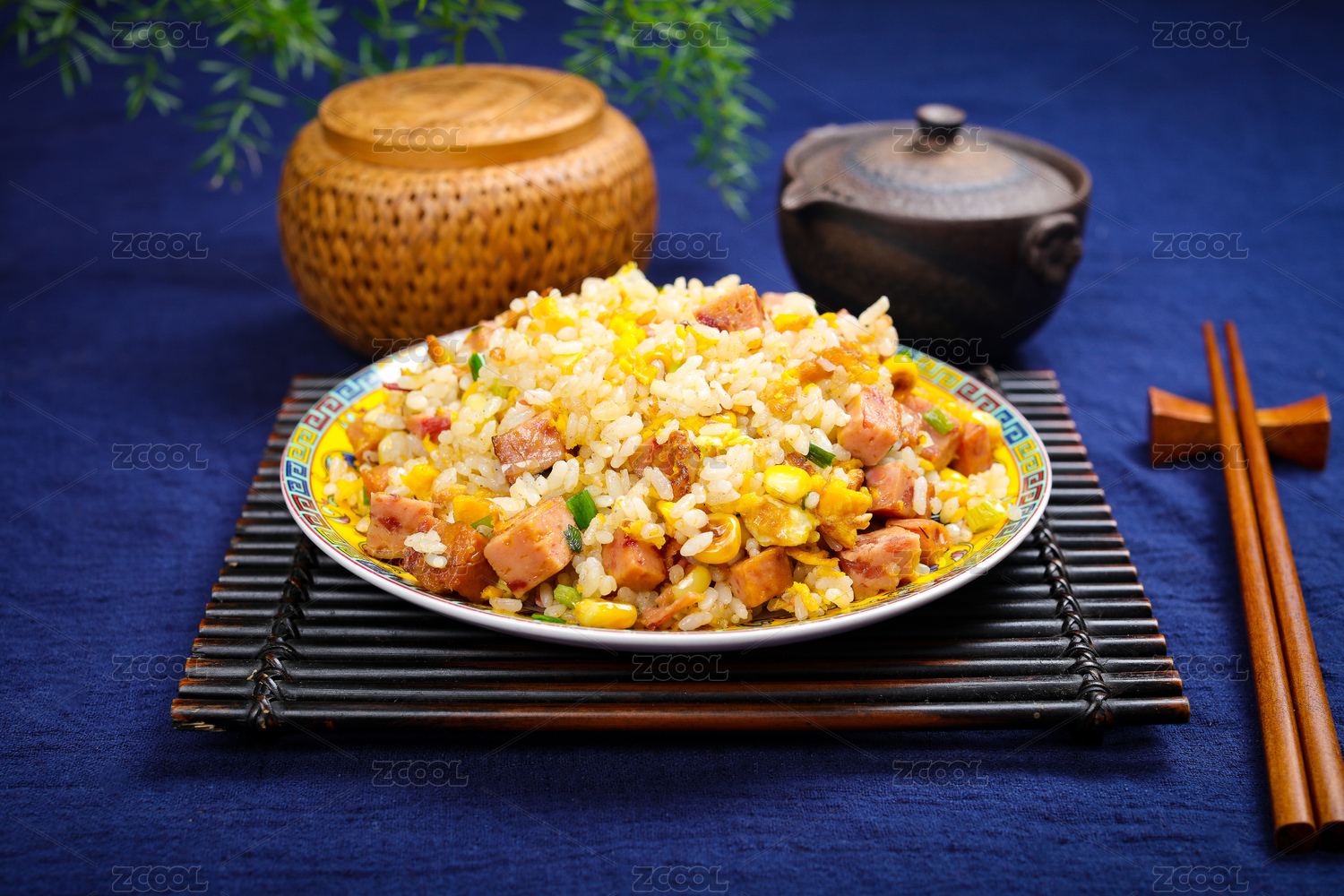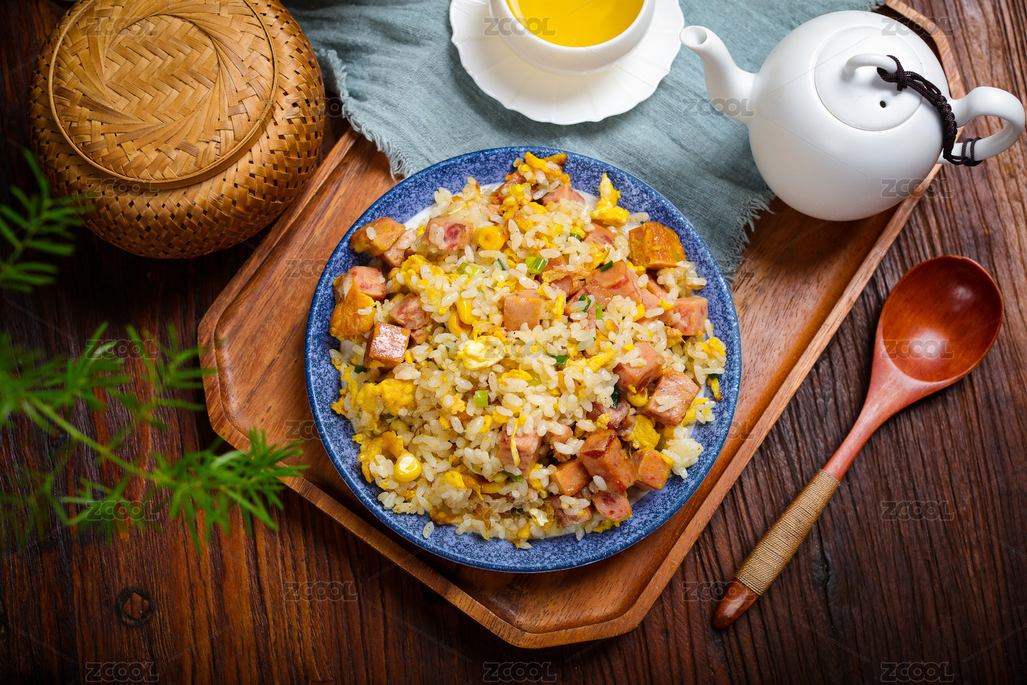 快餐外賣小吃美食火腿肉青菜炒飯