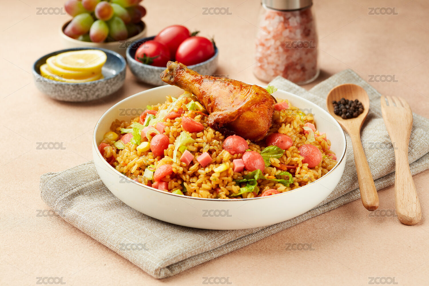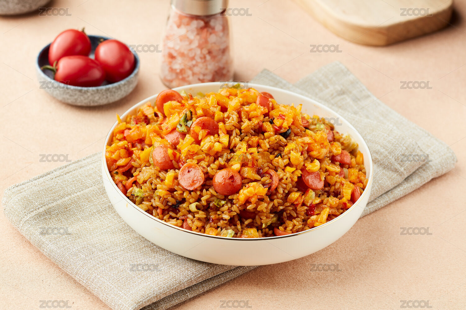 白色背景中式炒飯楊州炒飯?zhí)貙?/div>
