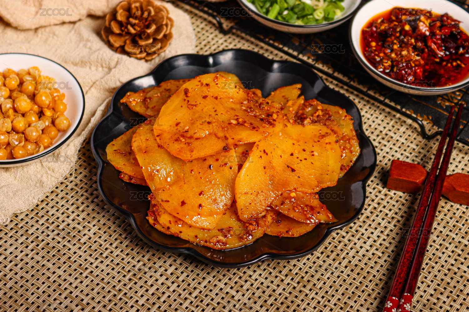 盤子里的干辣椒面麻辣土豆