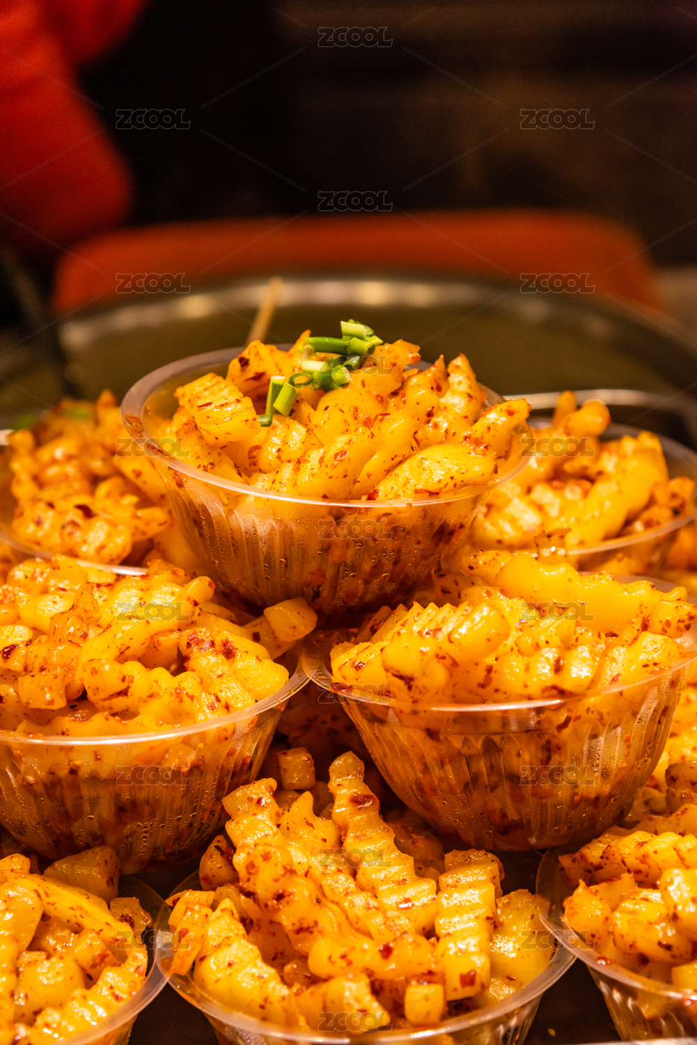 碗里的小吃麻辣土豆油炸土豆