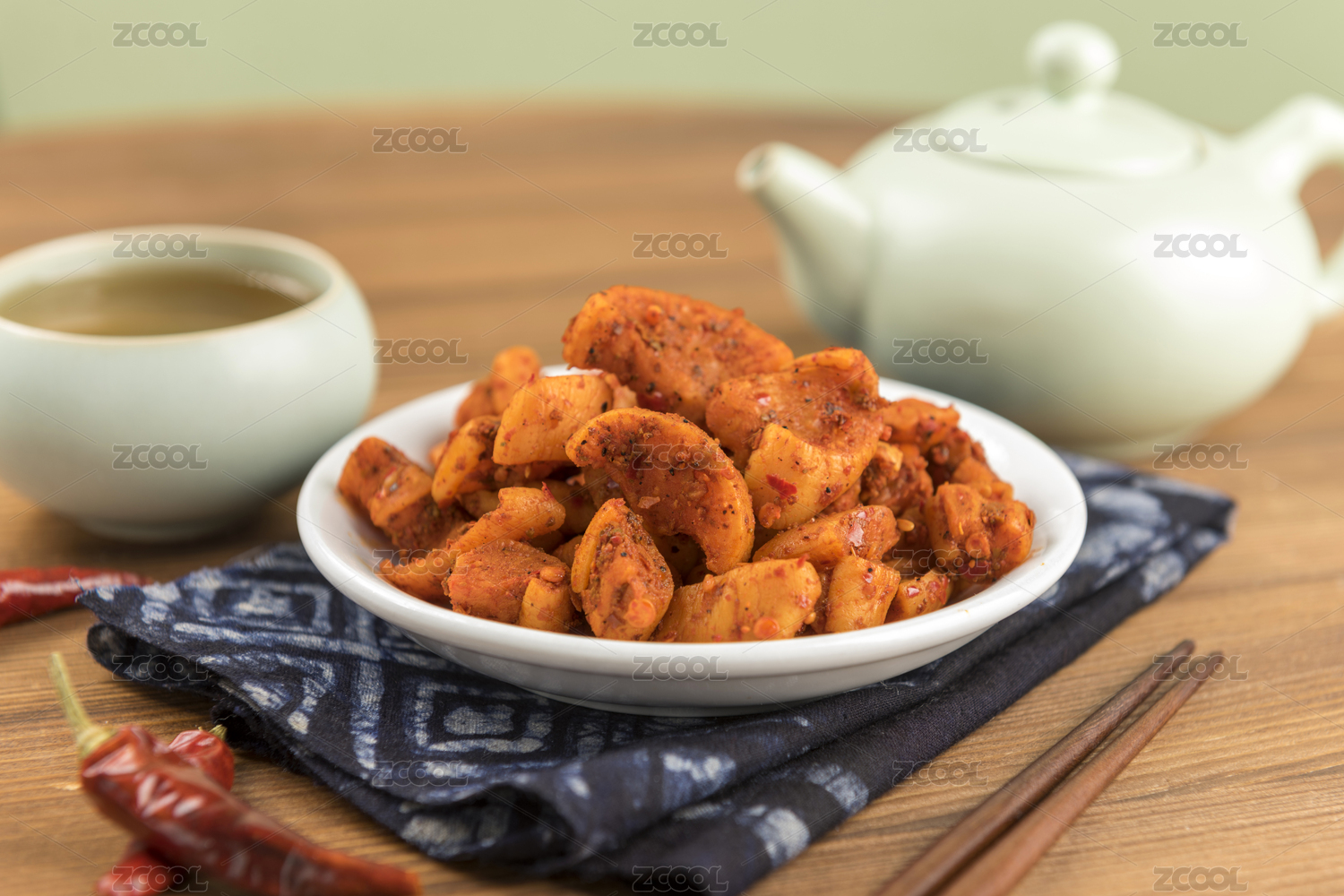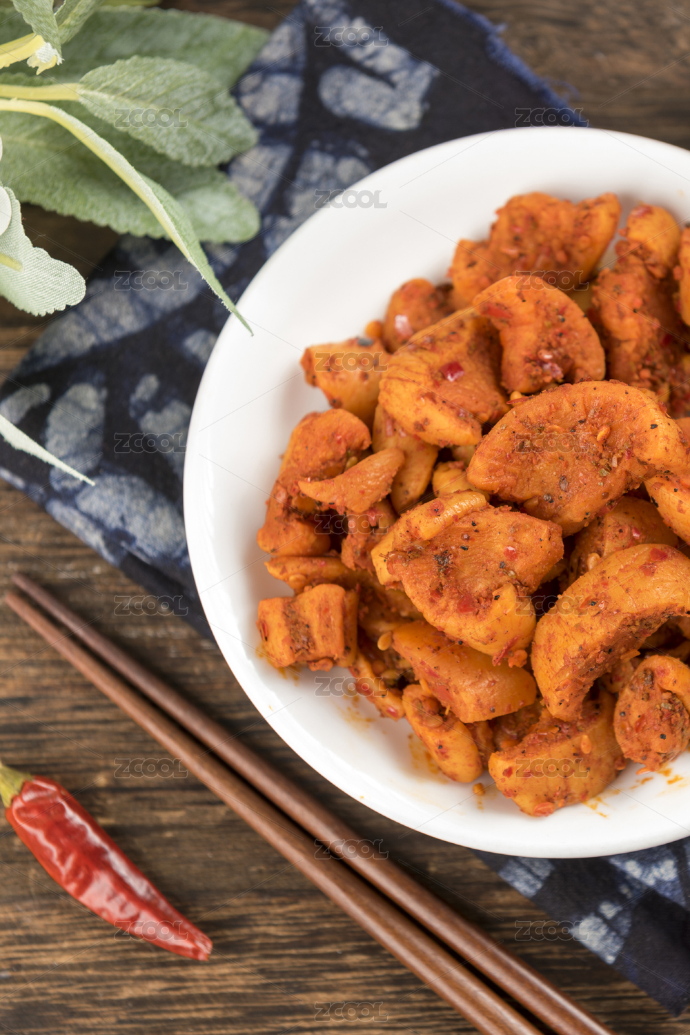 一盤麻辣蘿卜干小咸菜特寫