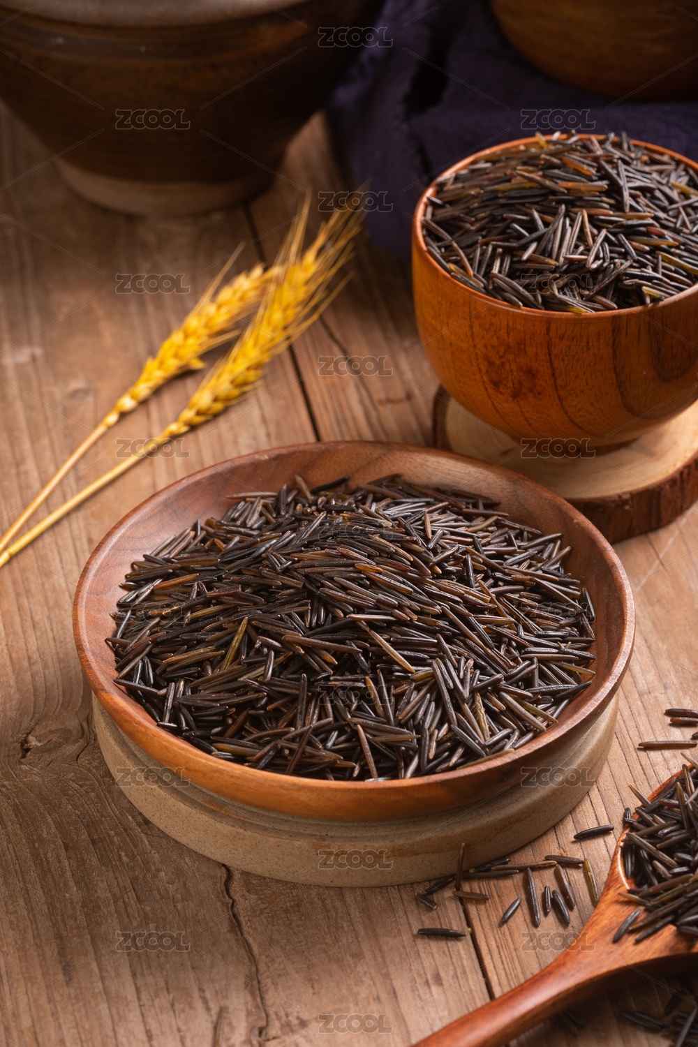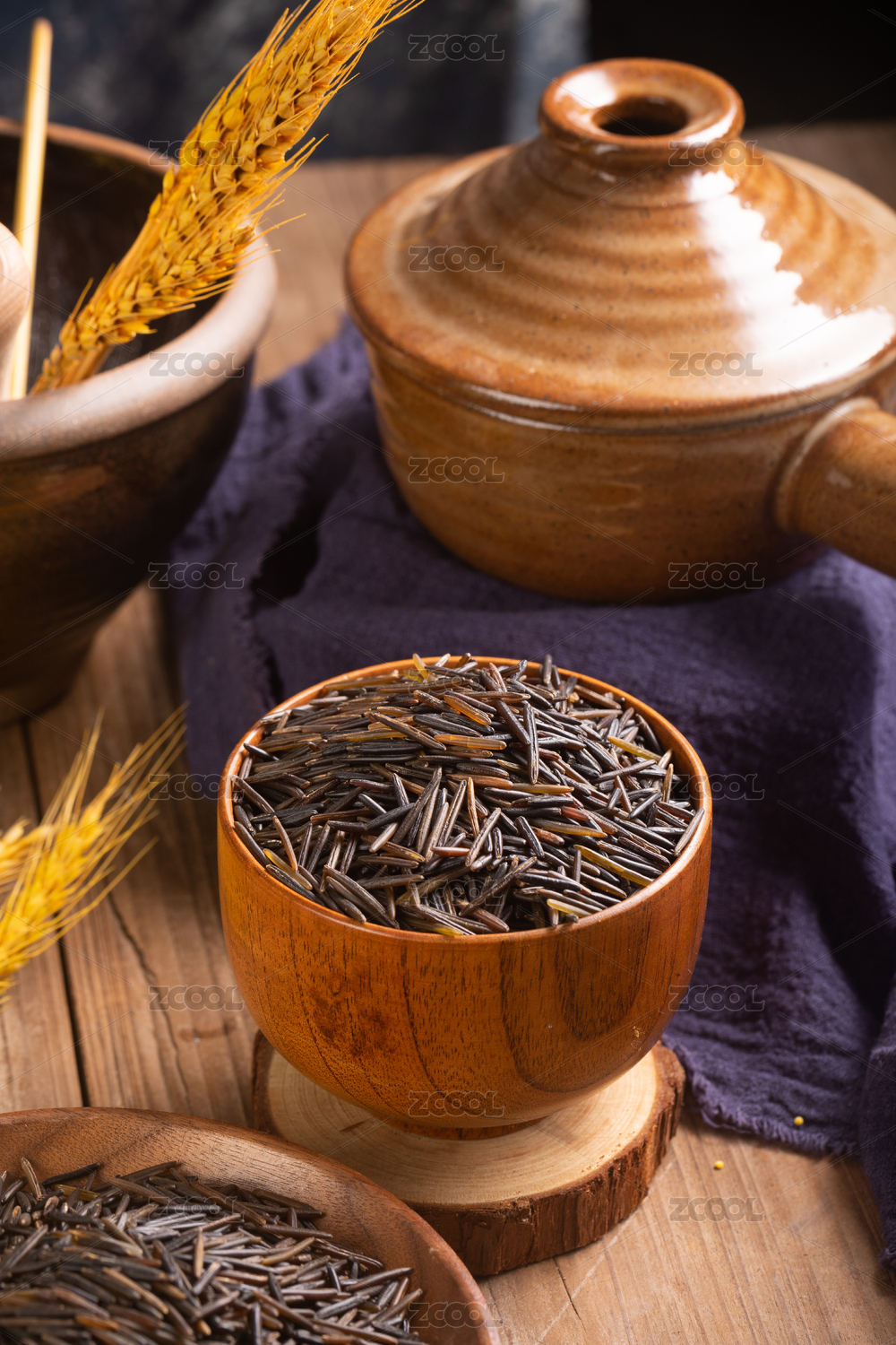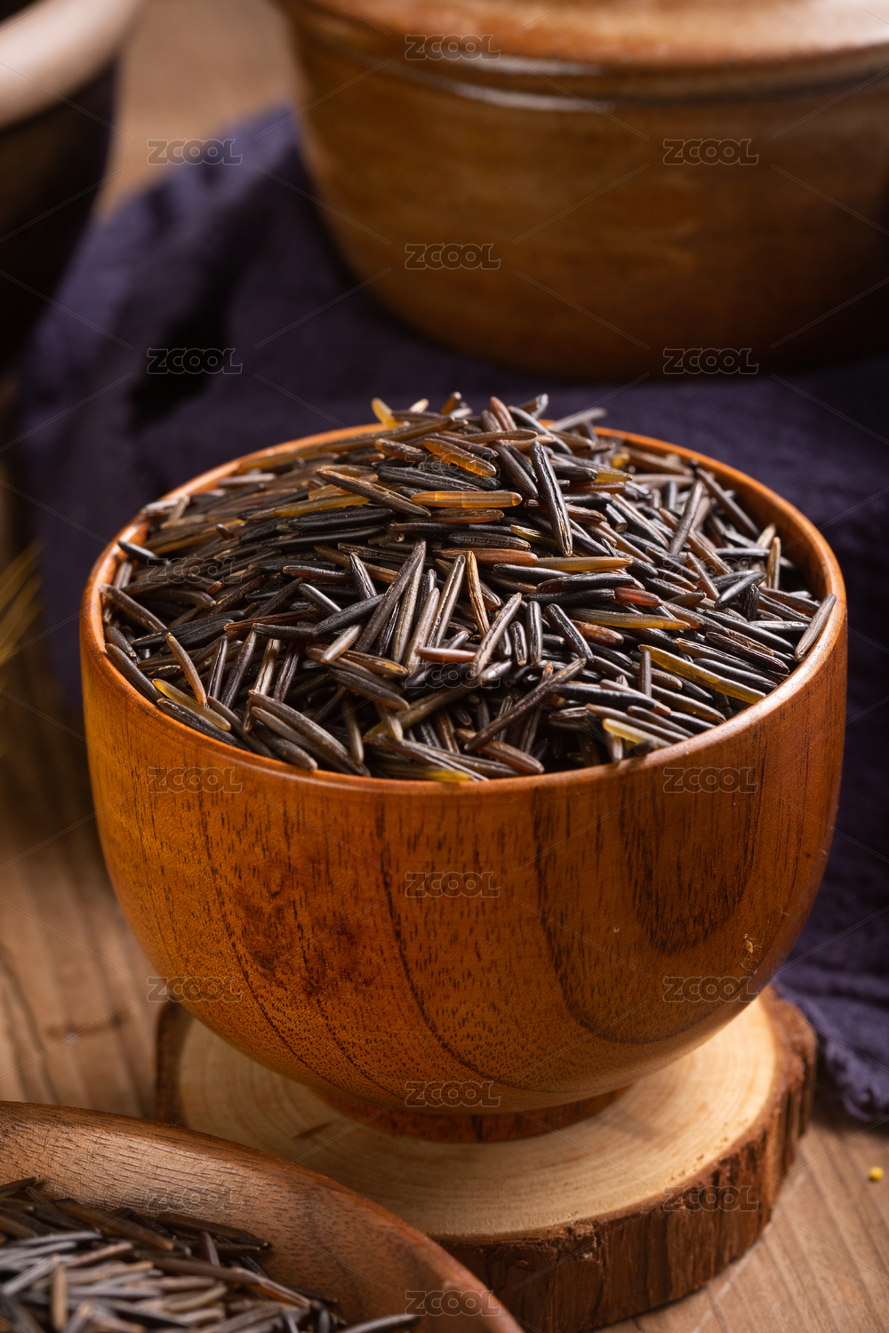傳統(tǒng)中式復(fù)古場景中裝在木碗中的菰米野米