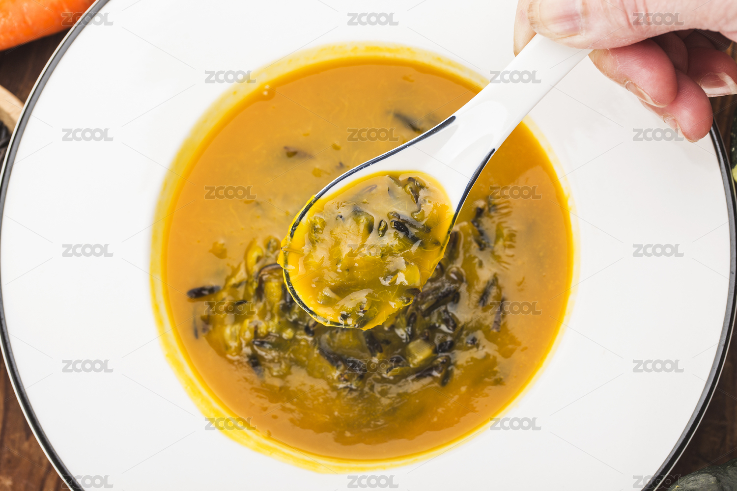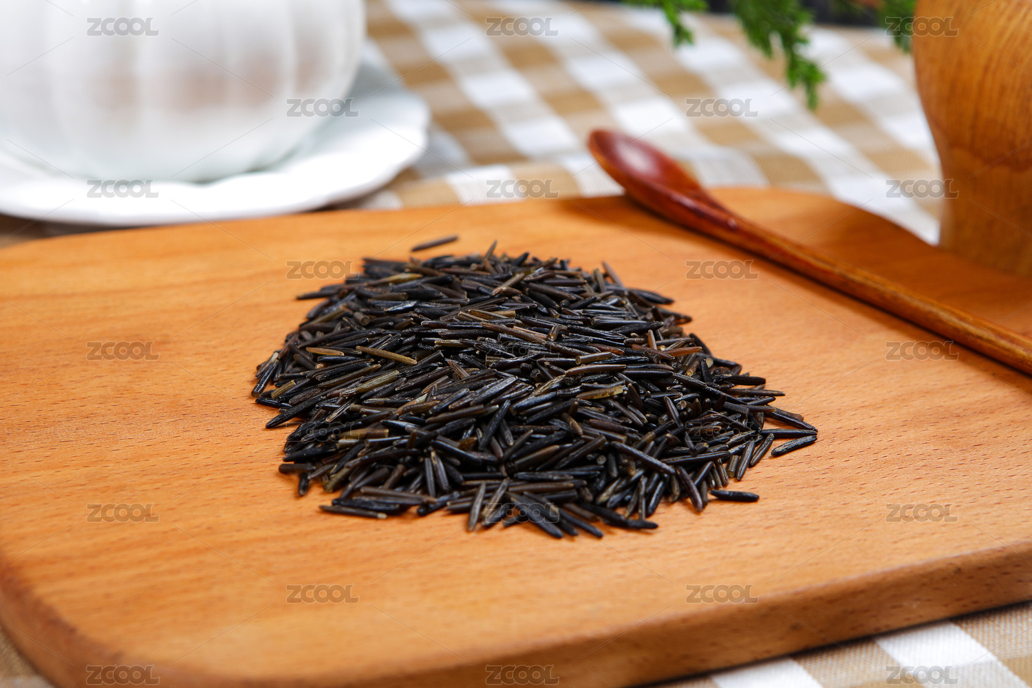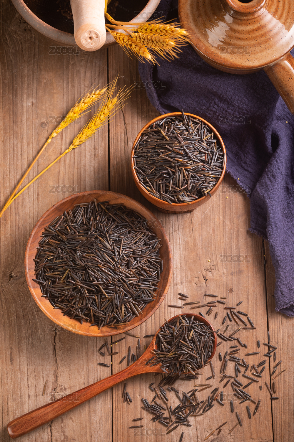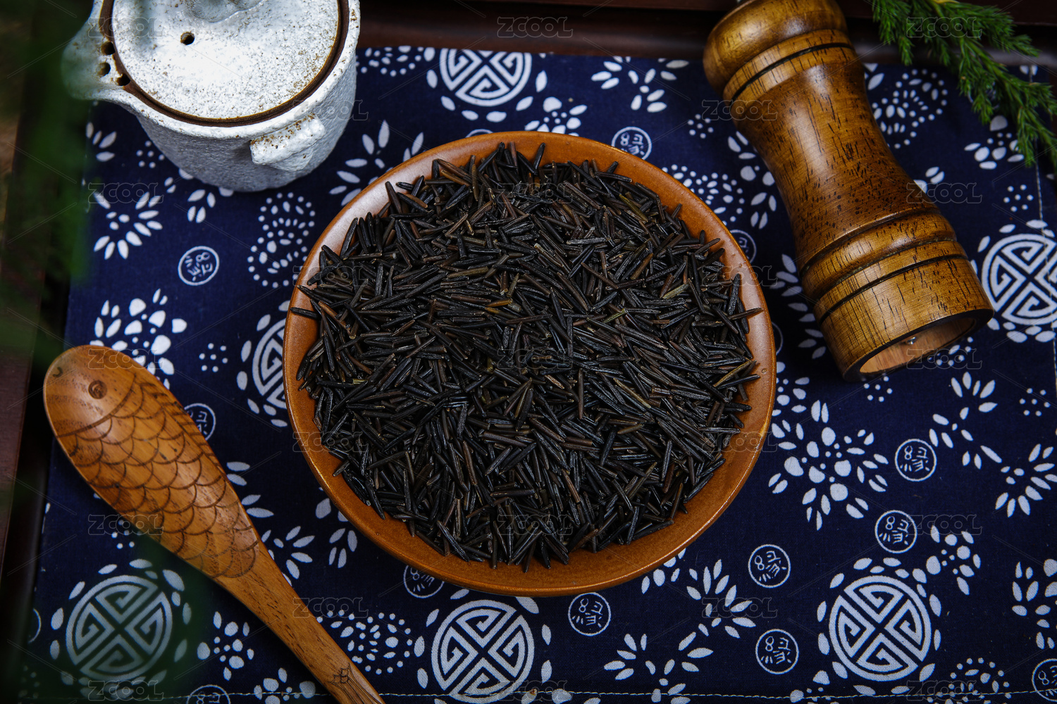 傳統(tǒng)中式復(fù)古場景中裝在木碗中的菰米野米
