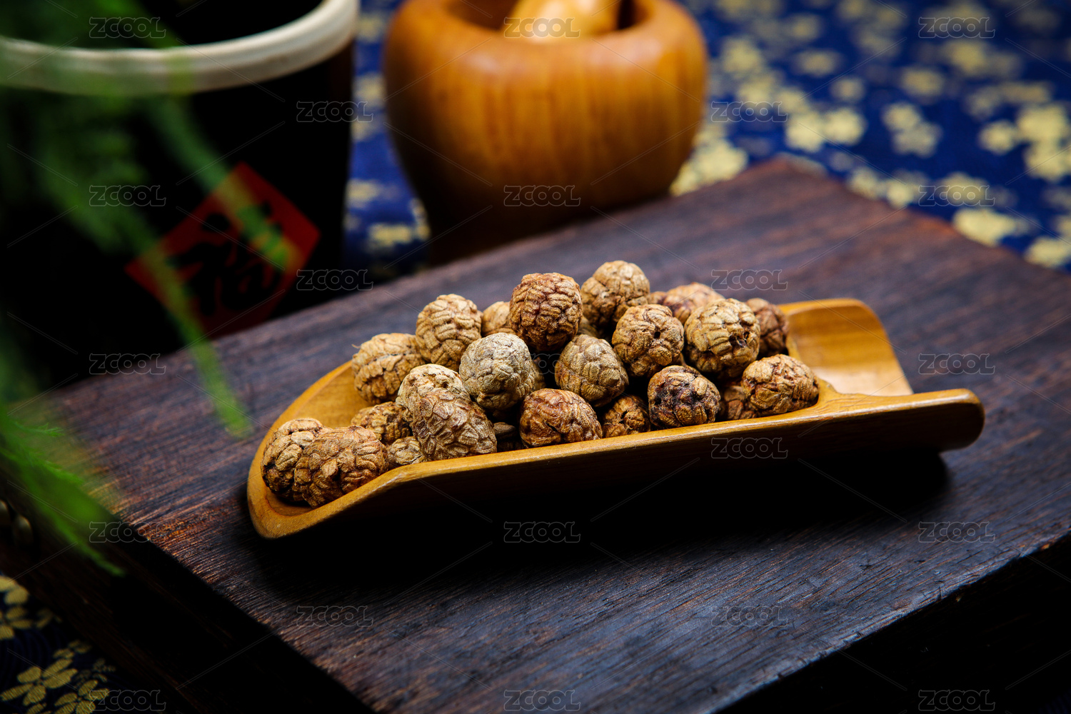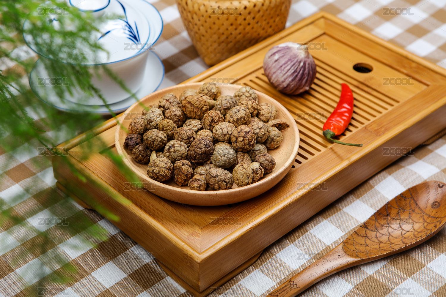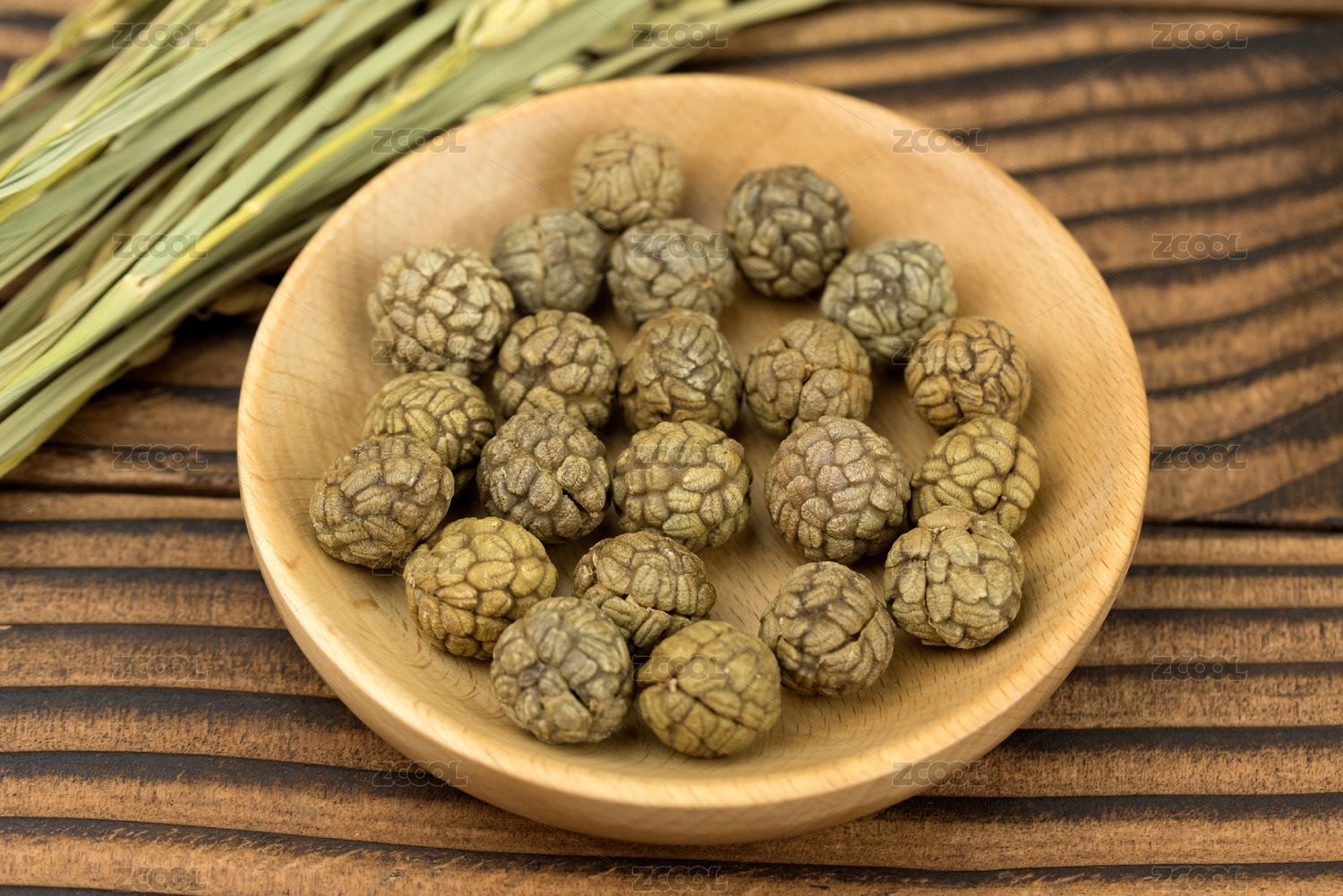 裝在盤子里的草寇木制背景