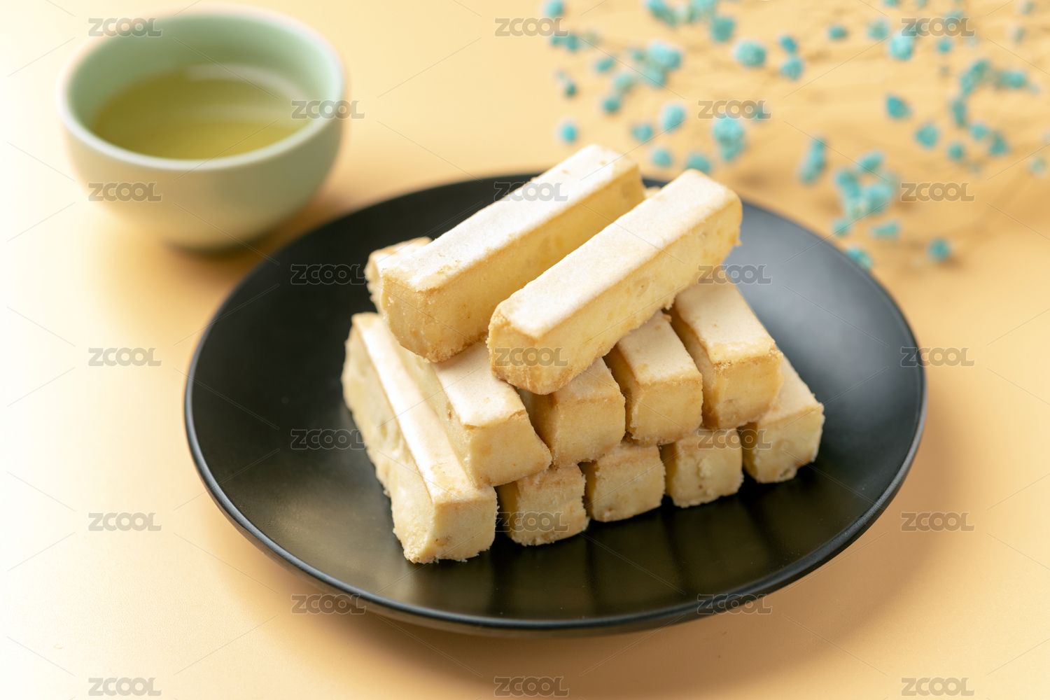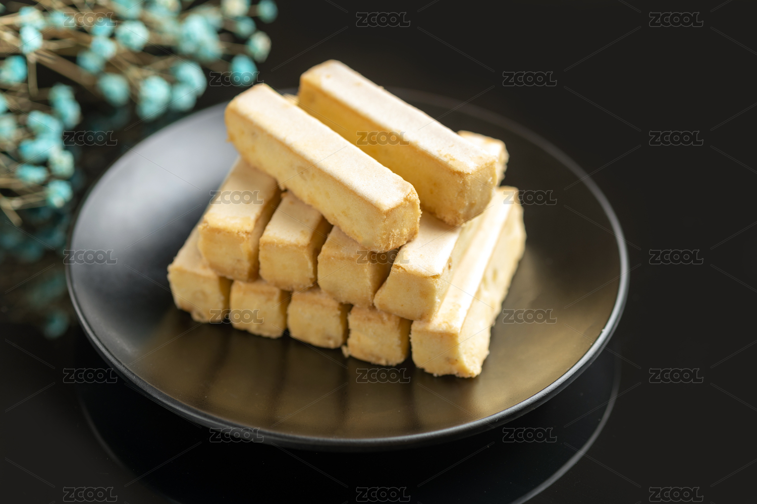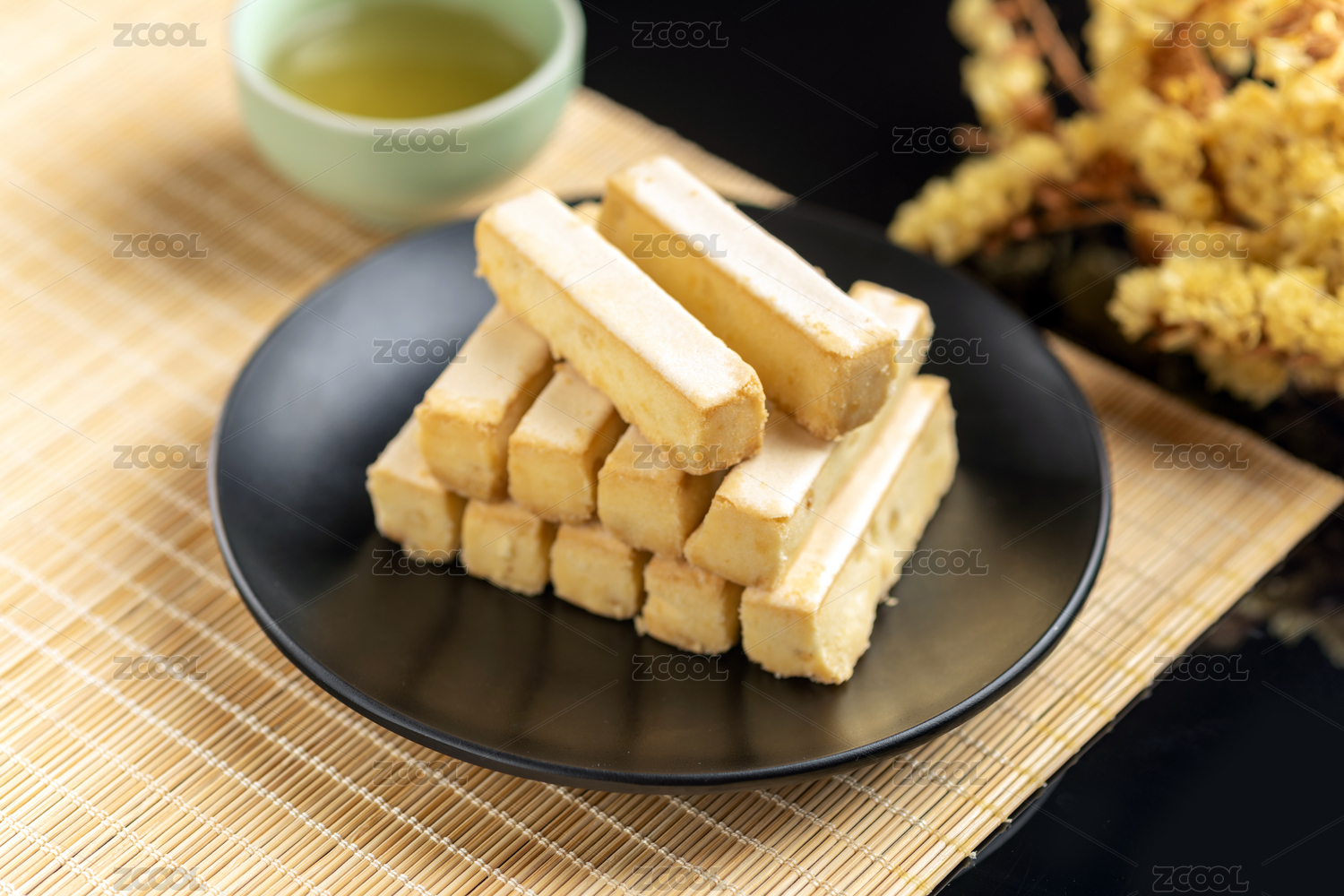 傳統(tǒng)糕點(diǎn)松仁奶酥特寫木桌面