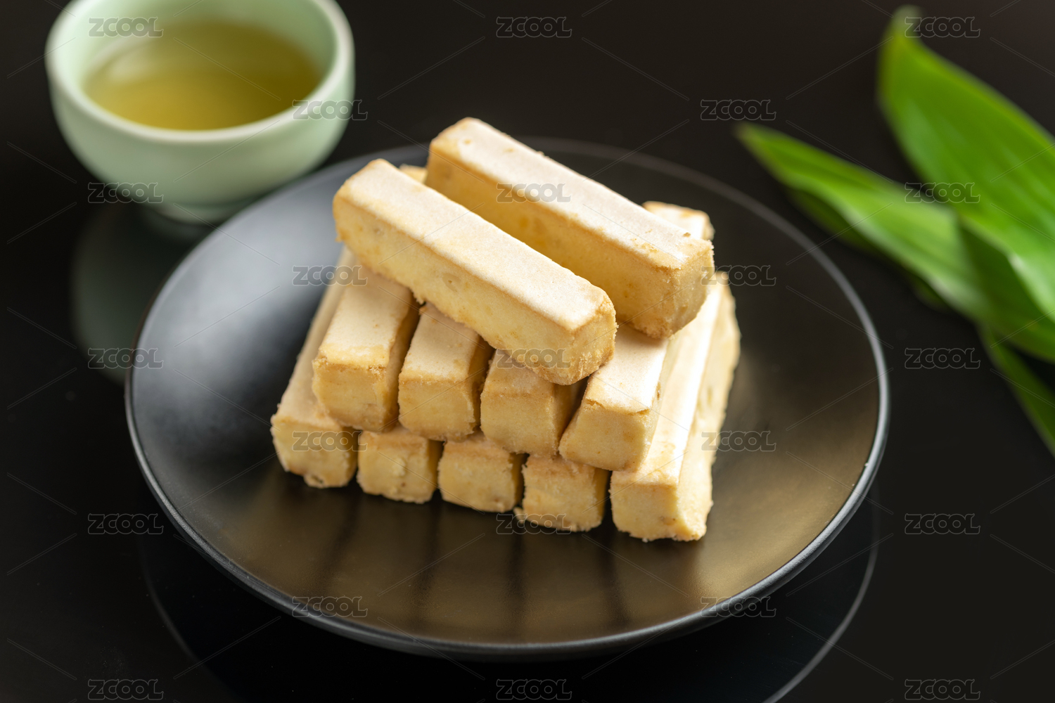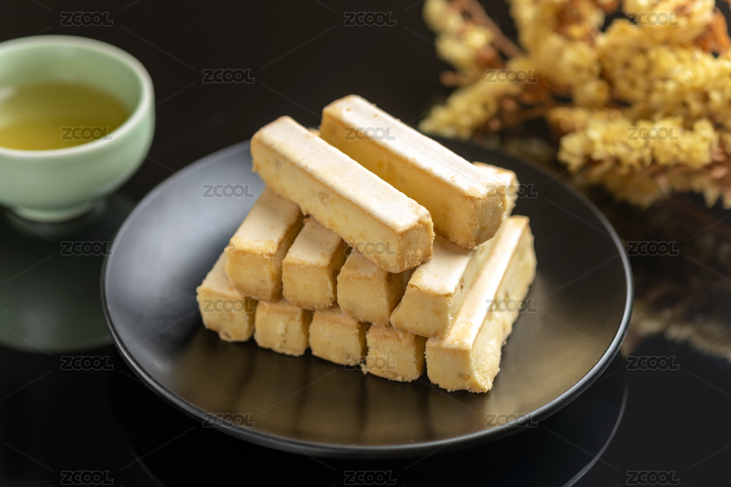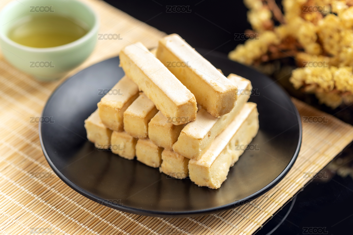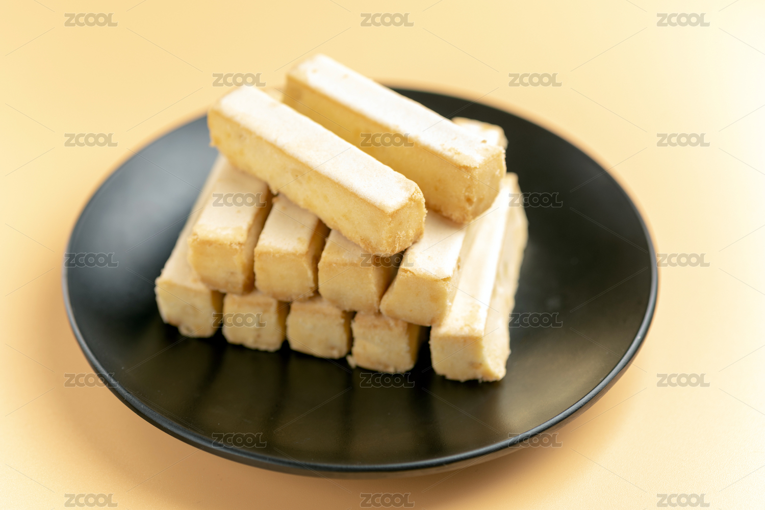 傳統(tǒng)糕點(diǎn)松仁奶酥特寫木桌面