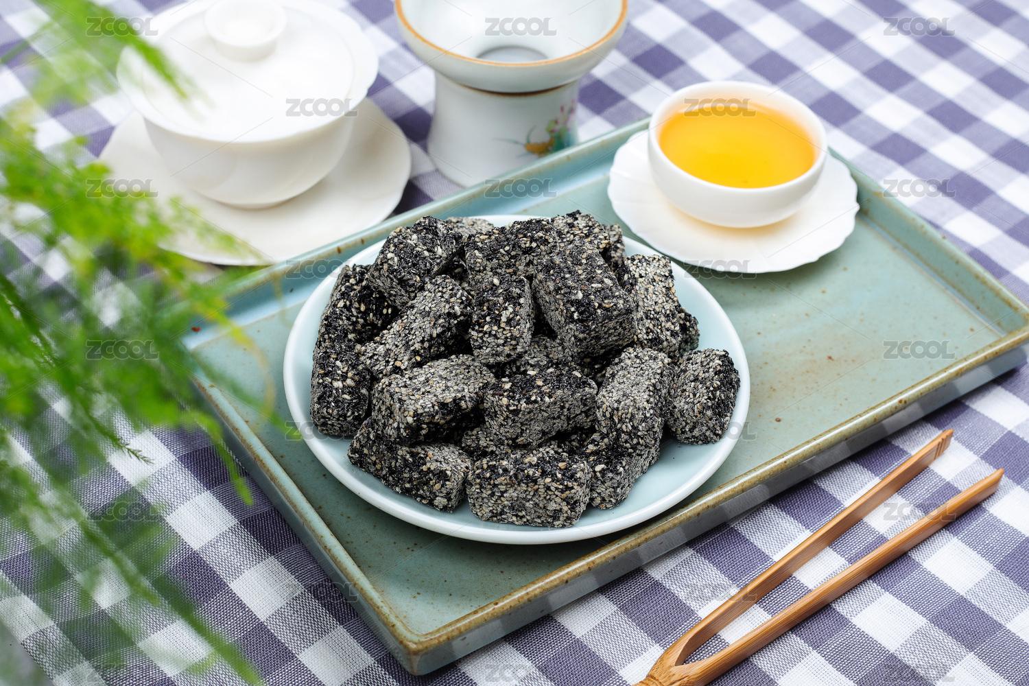 白色盤子里的麻醬酥糕點小吃