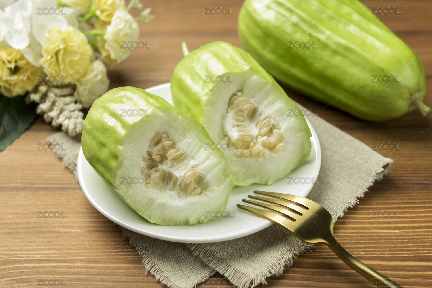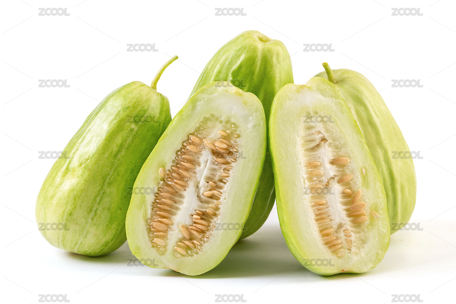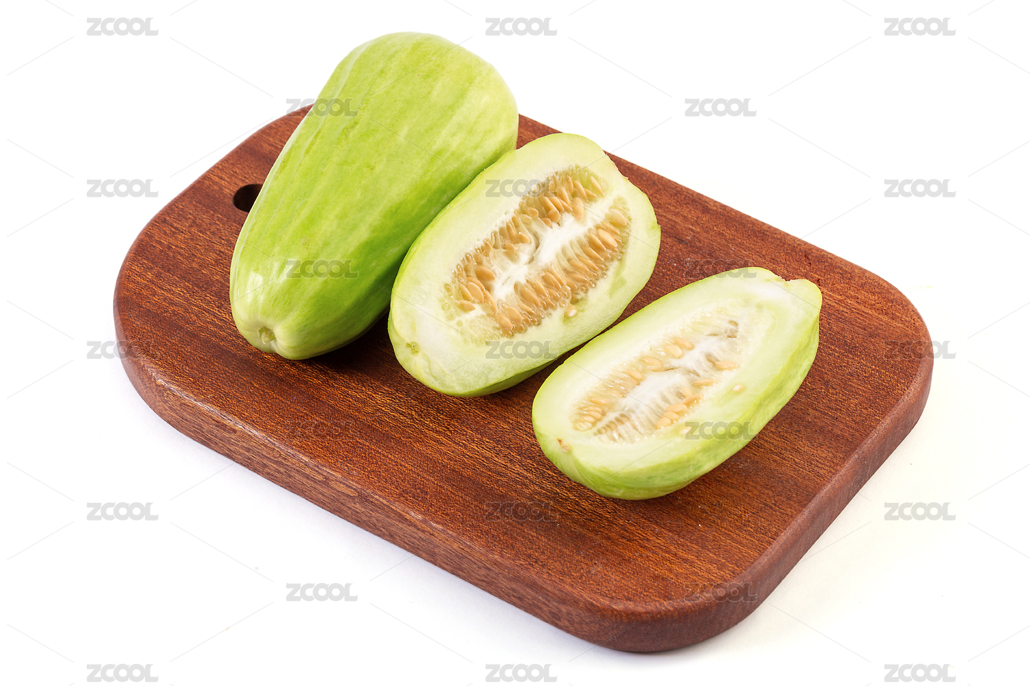 白色背景上切開的菜瓜特寫