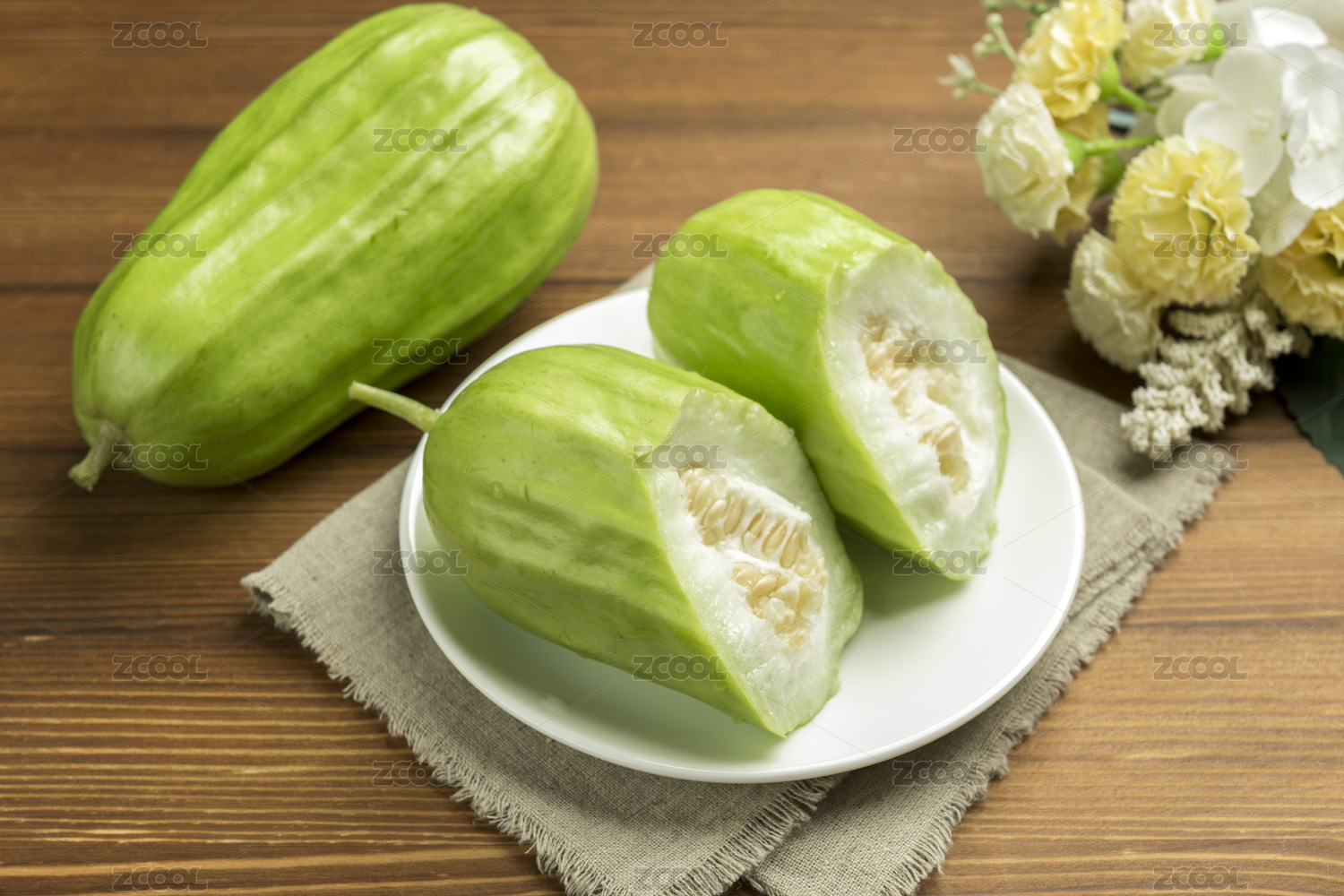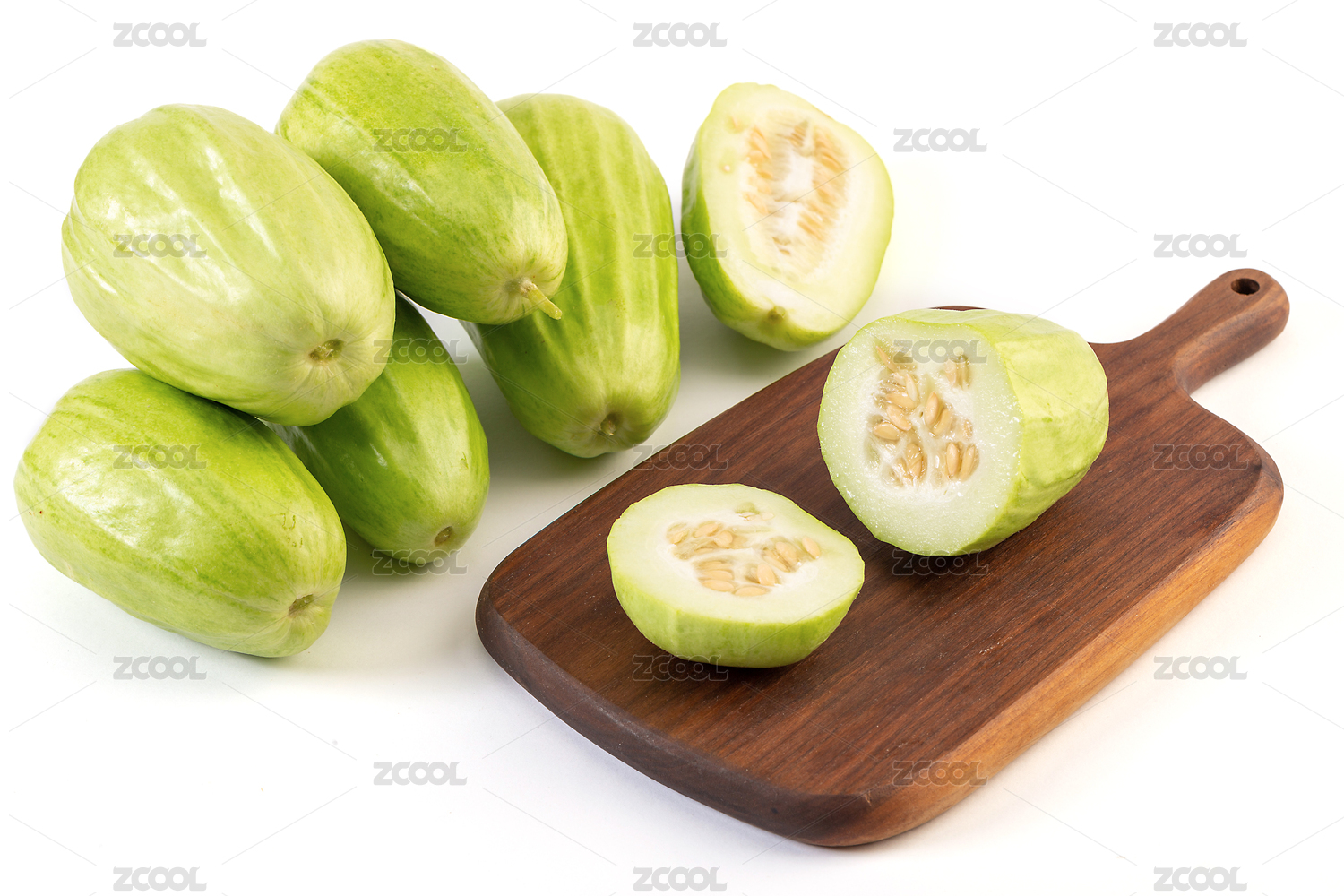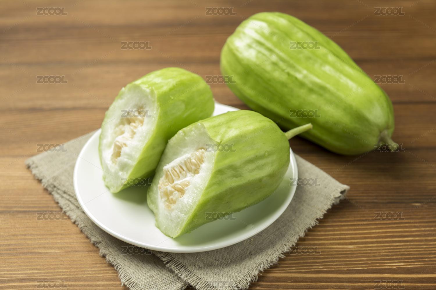 白色背景上切開的菜瓜特寫