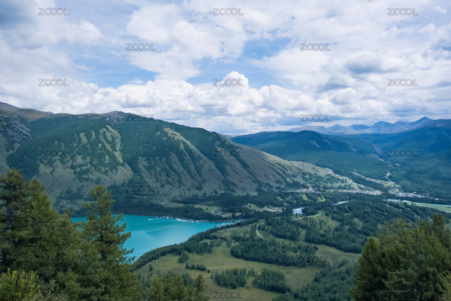 中國新疆布爾津縣喀納斯遠眺禾木村風(fēng)光
