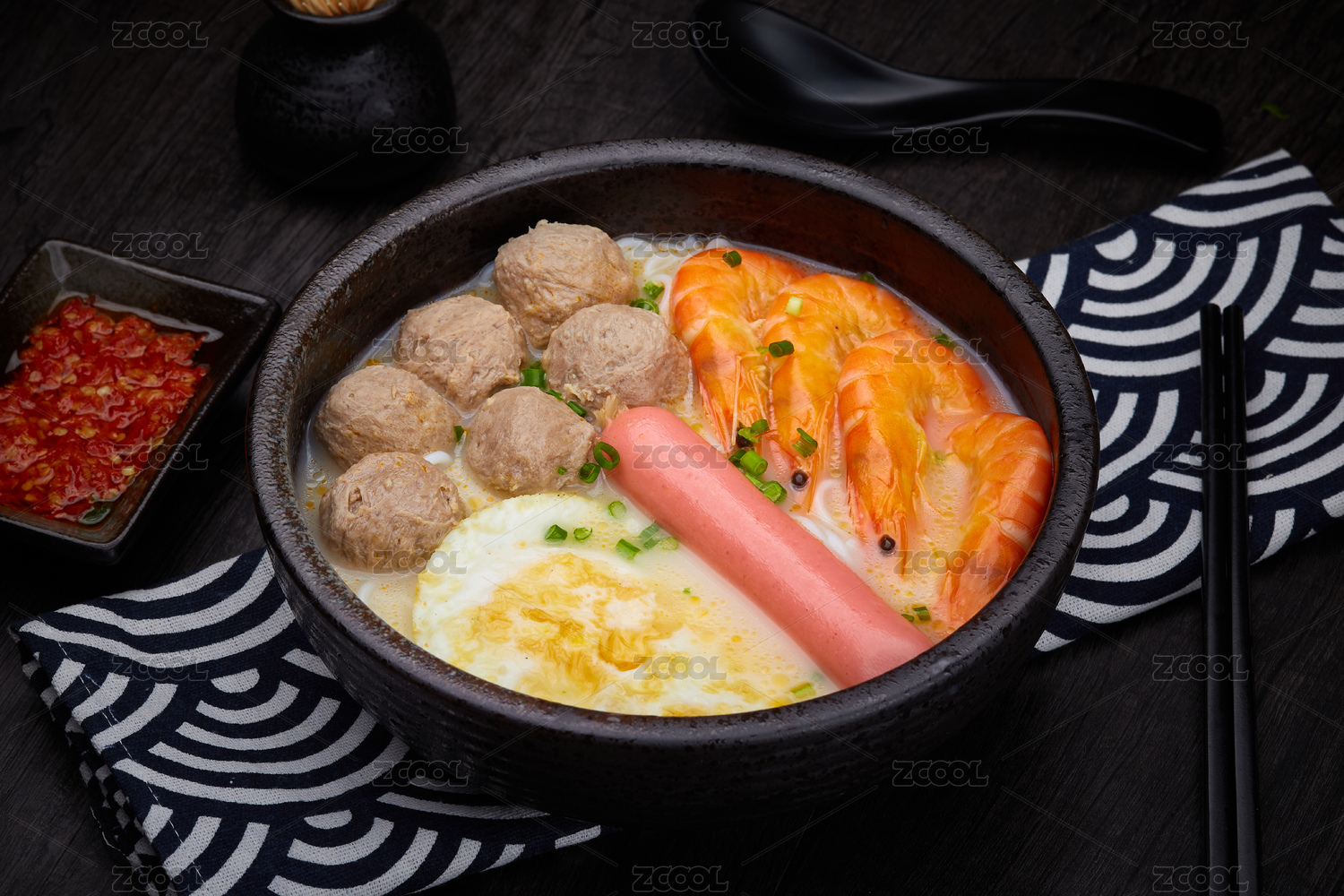 鮮蝦熱狗腸荷包蛋湯粉