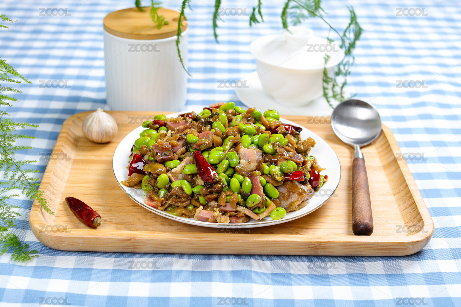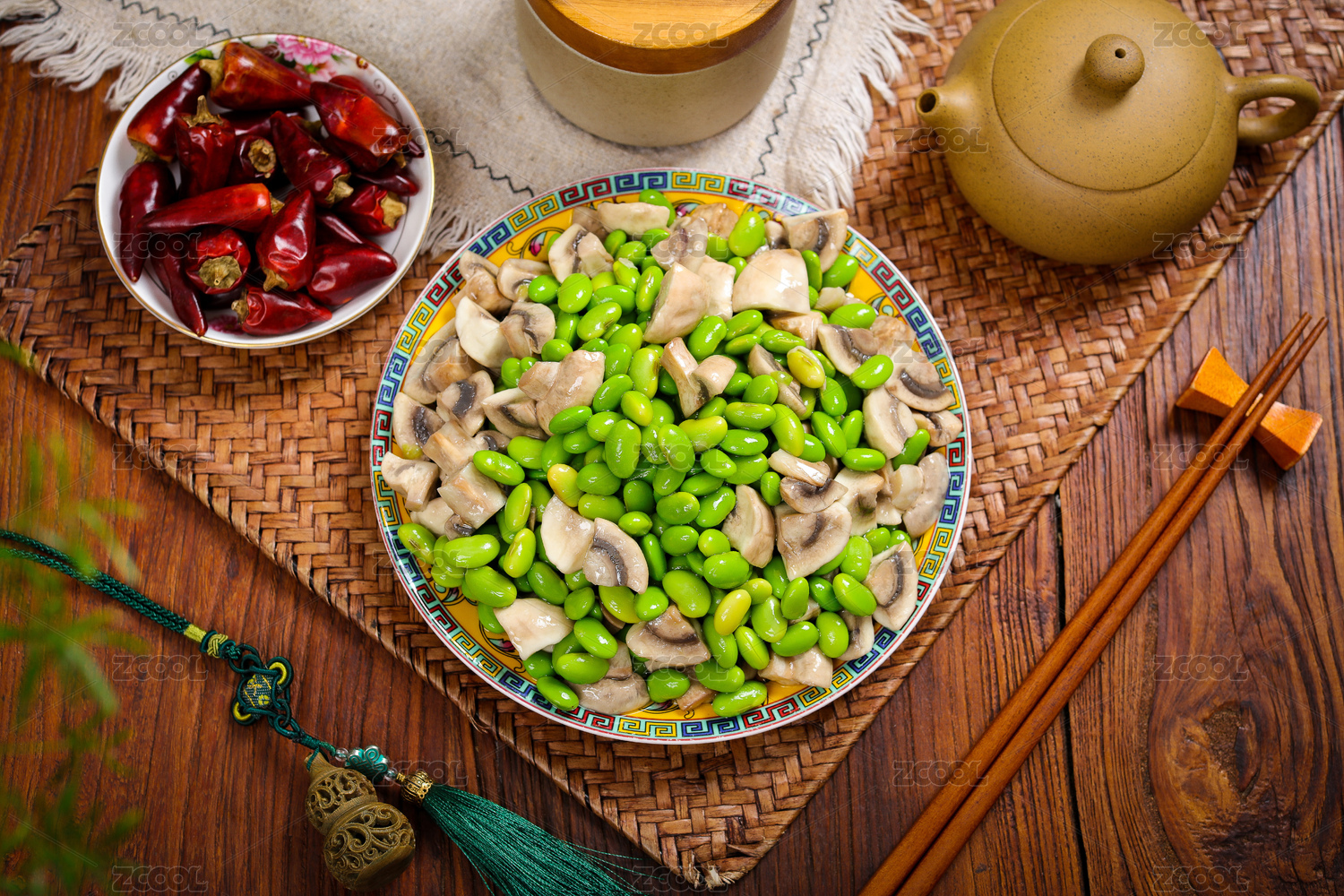 特色農(nóng)家菜白蘑菇炒毛豆米