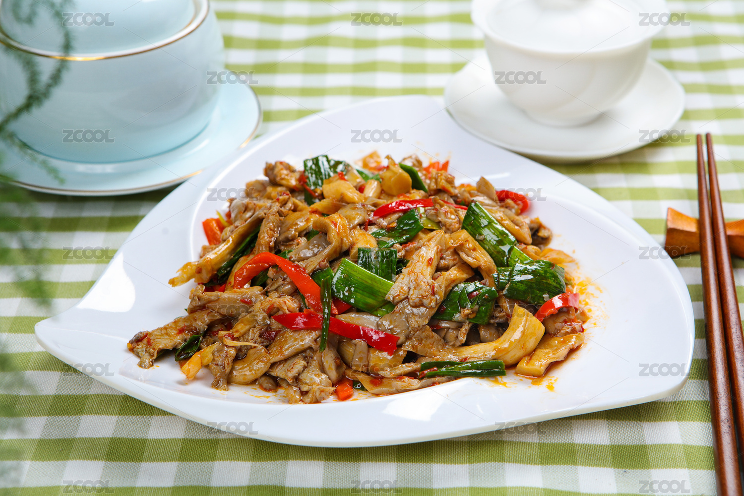 放在石茶座上的一盤(pán)農(nóng)家炒平菇
