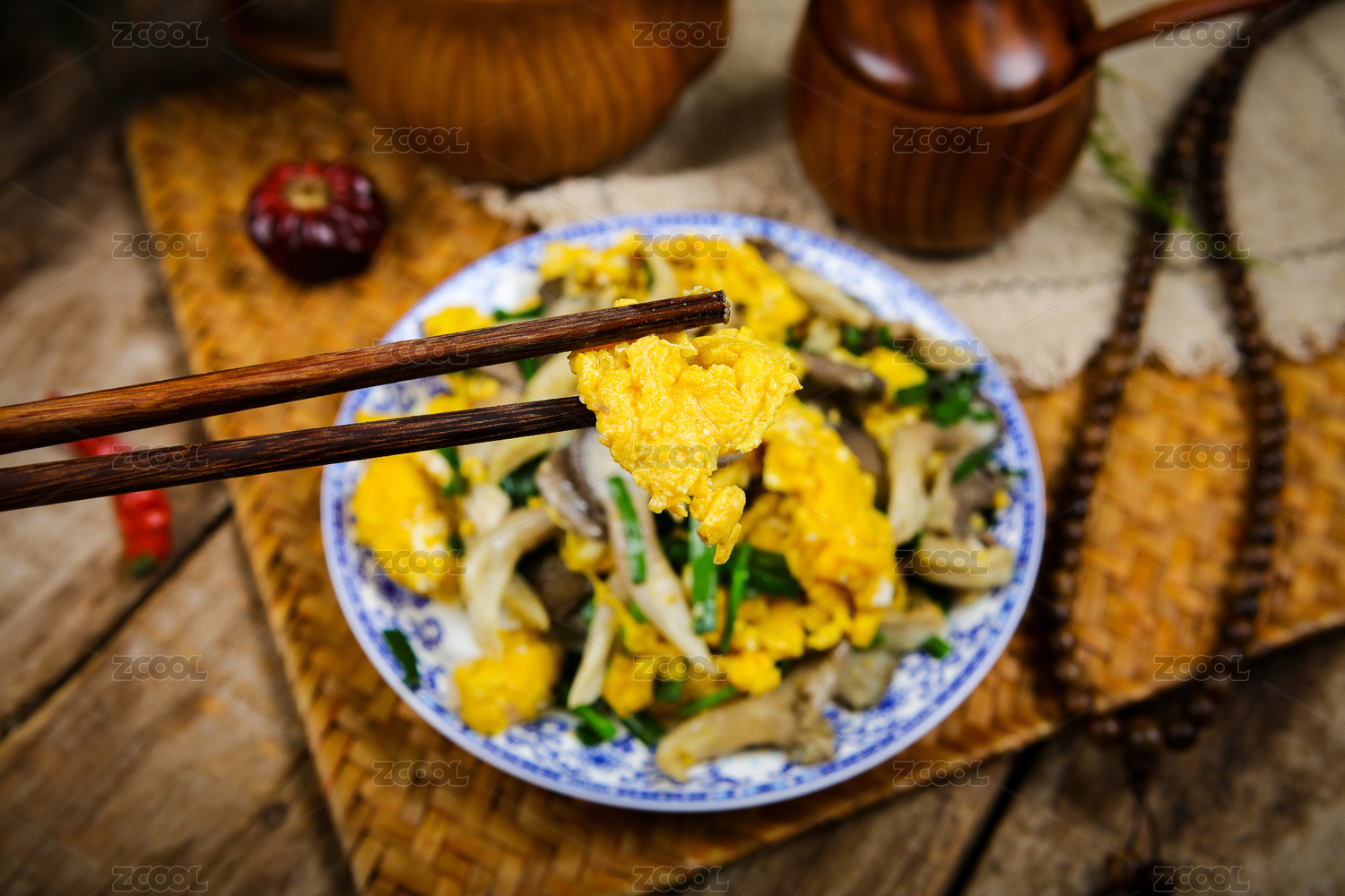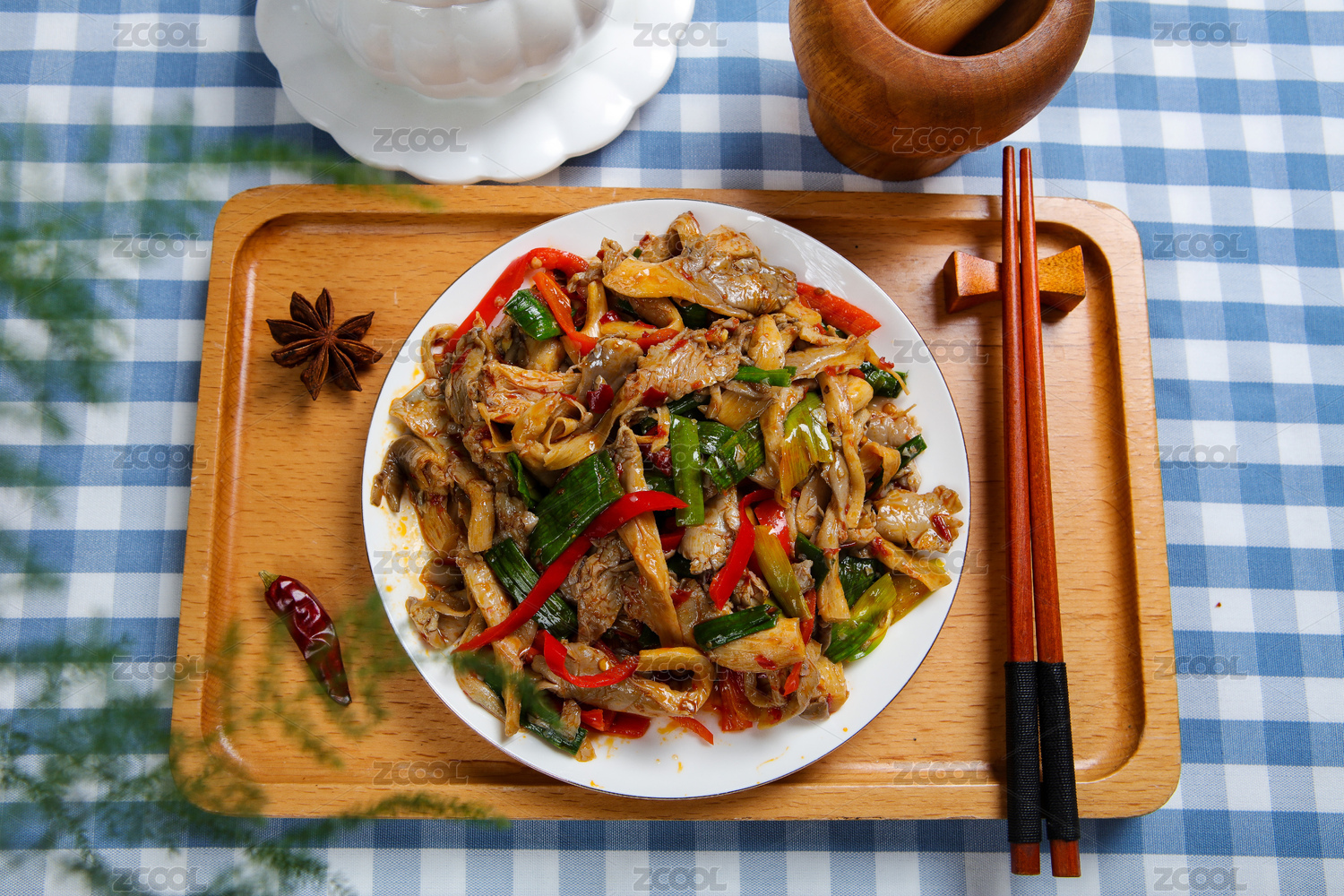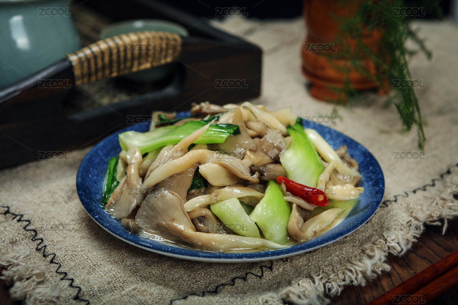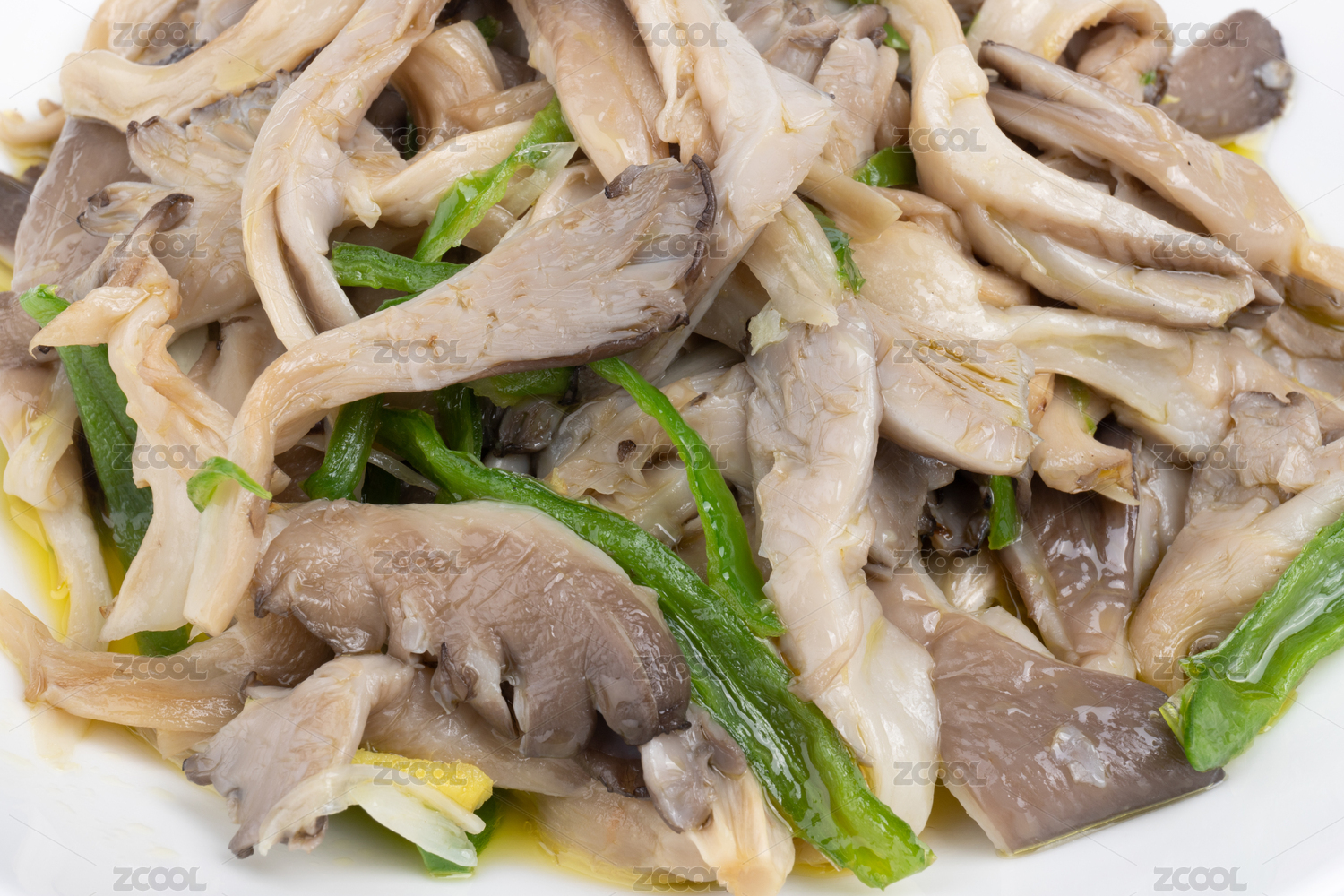放在木紋板上的一盤(pán)家常菜炒平菇