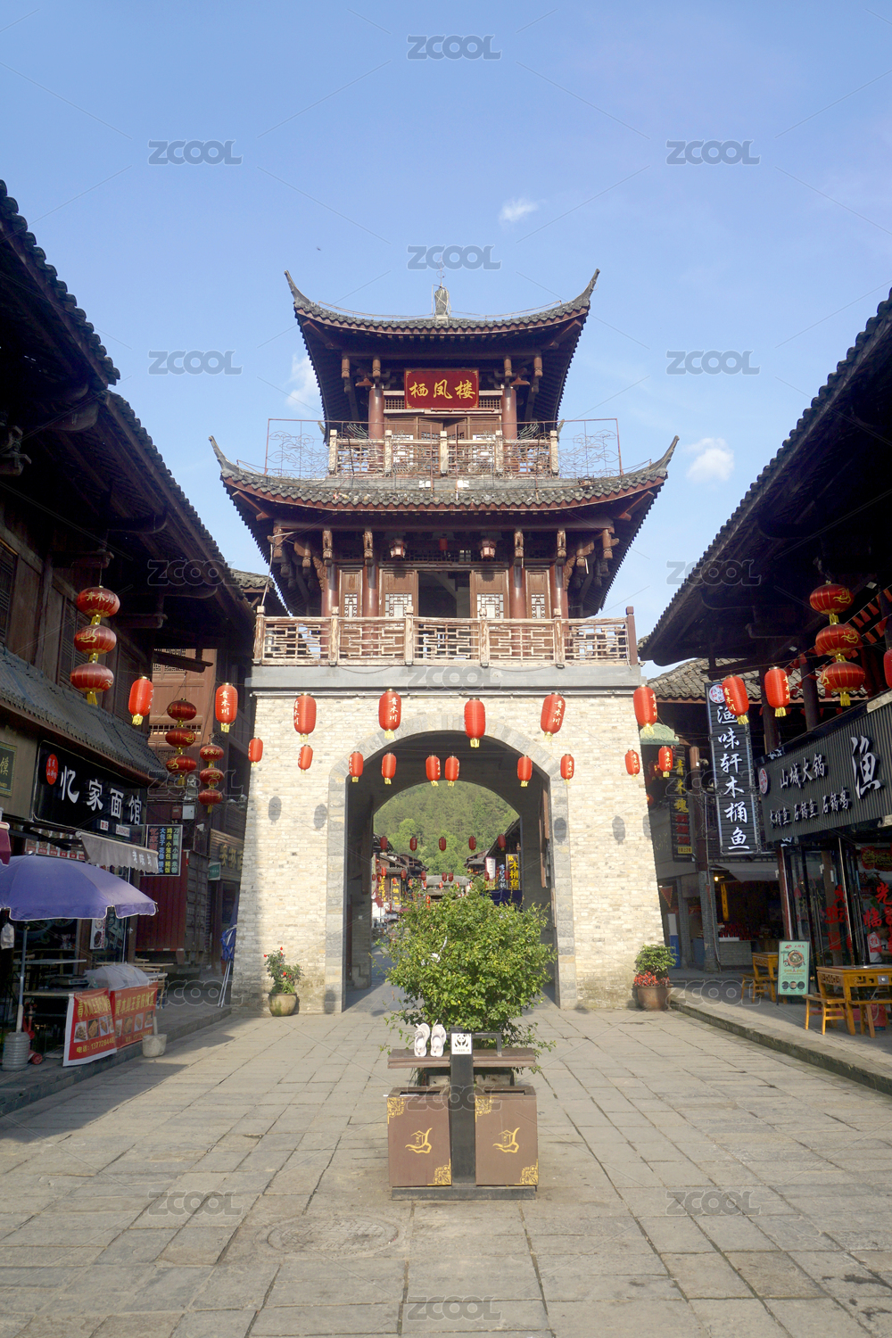 陜西漢中青木川古鎮(zhèn)老街傳統(tǒng)過街牌坊