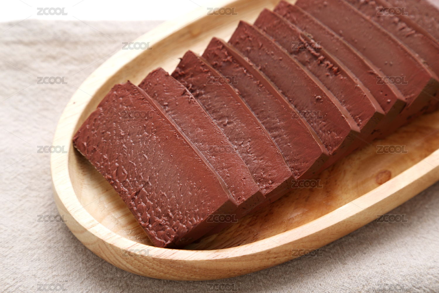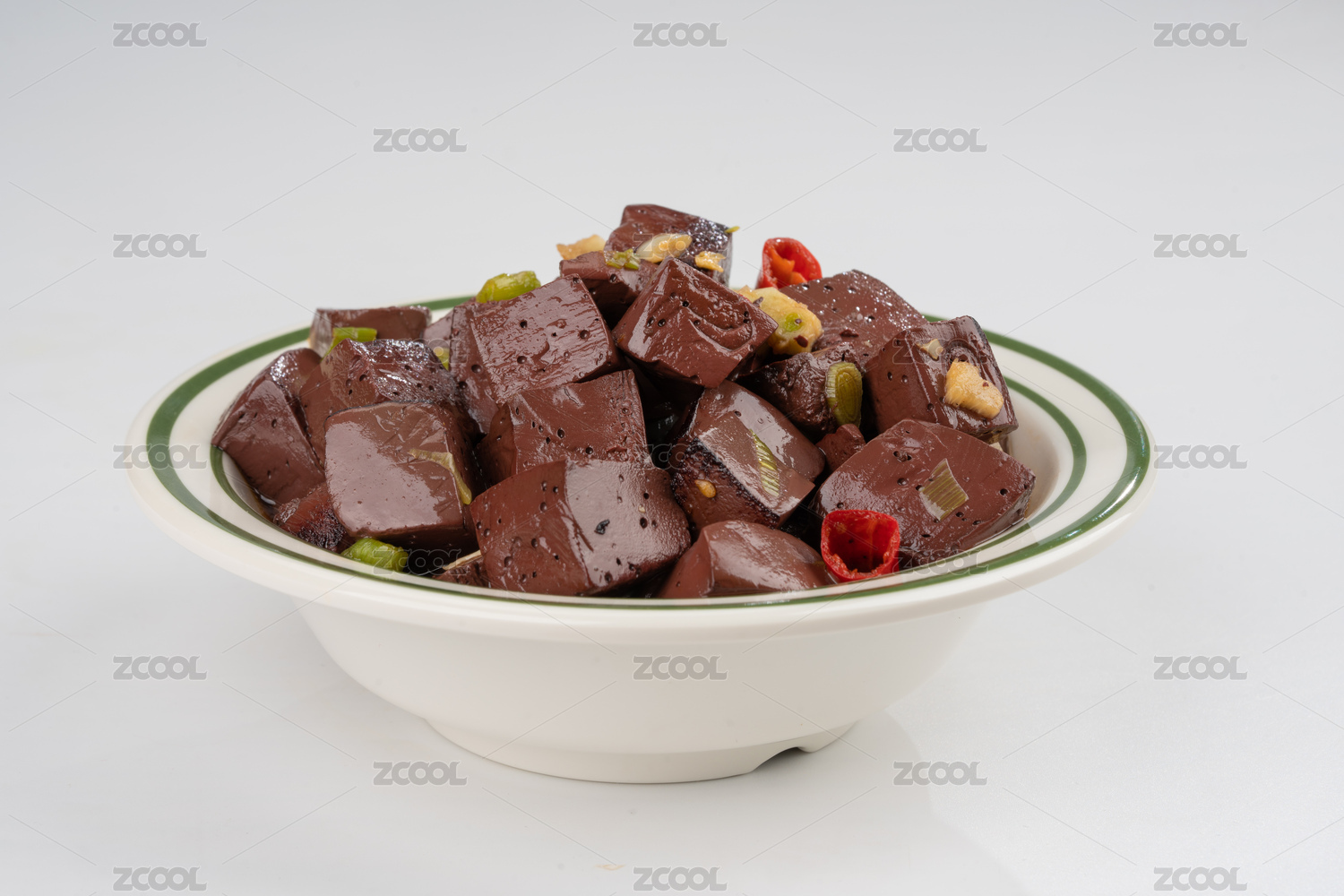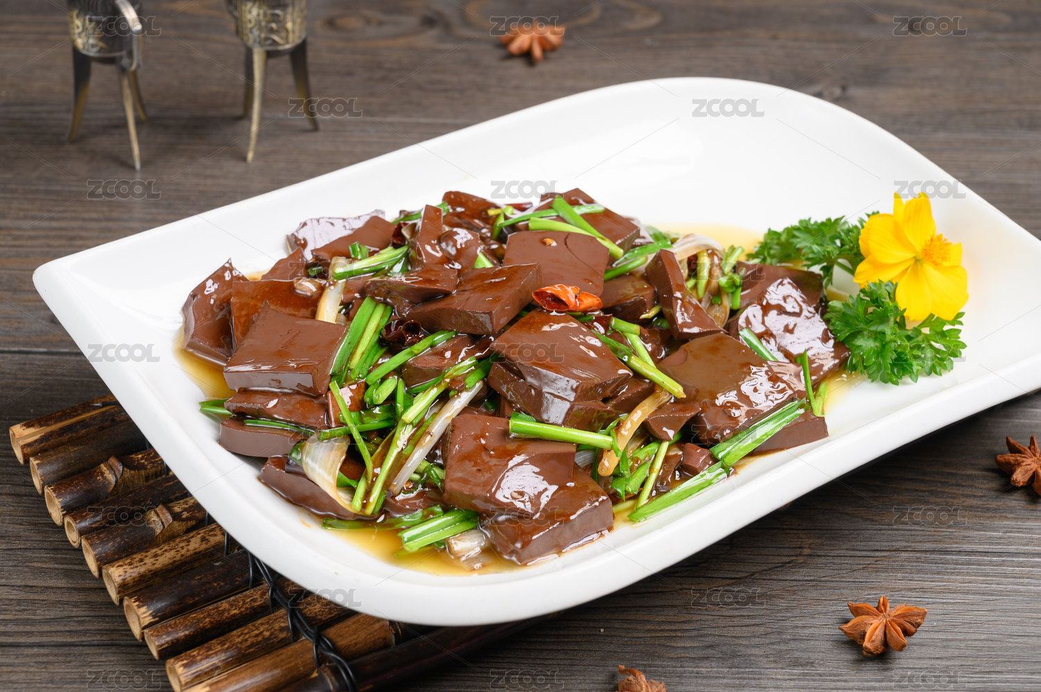 用餐盤(pán)裝著的菜肴蒜苗炒血豆腐