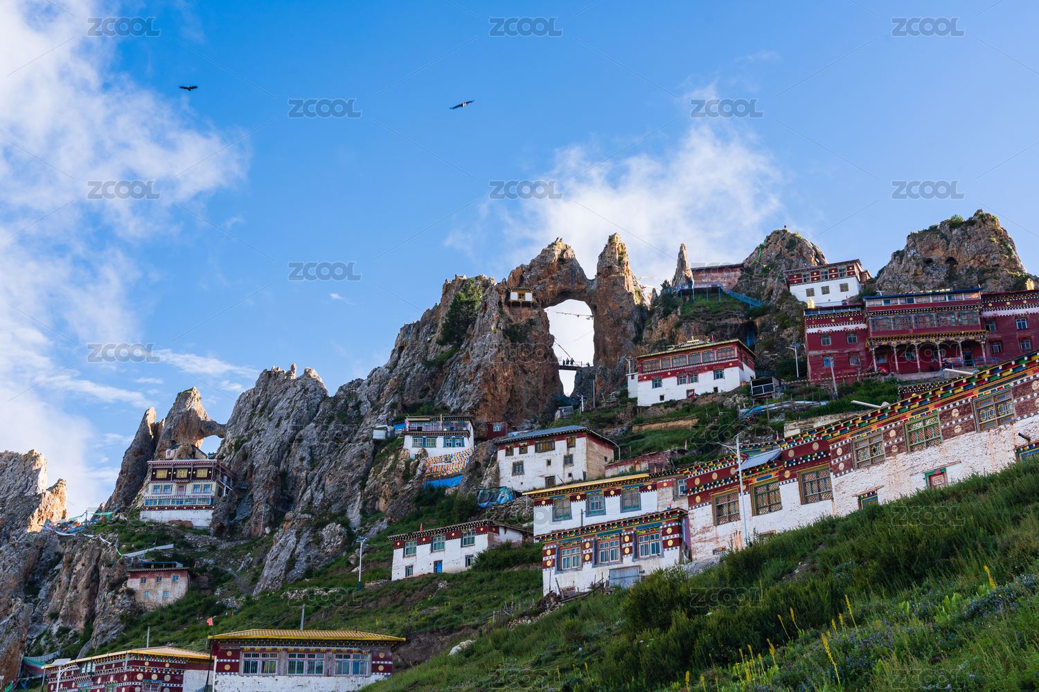 中國(guó)西藏孜珠山上的天門(mén)洞