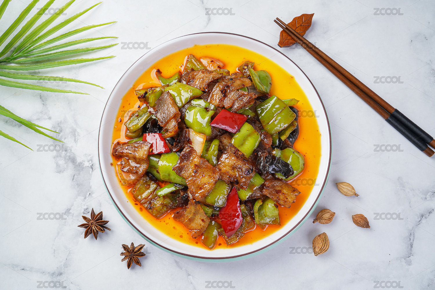 一道美味的中國湘菜,辣椒炒回鍋肉