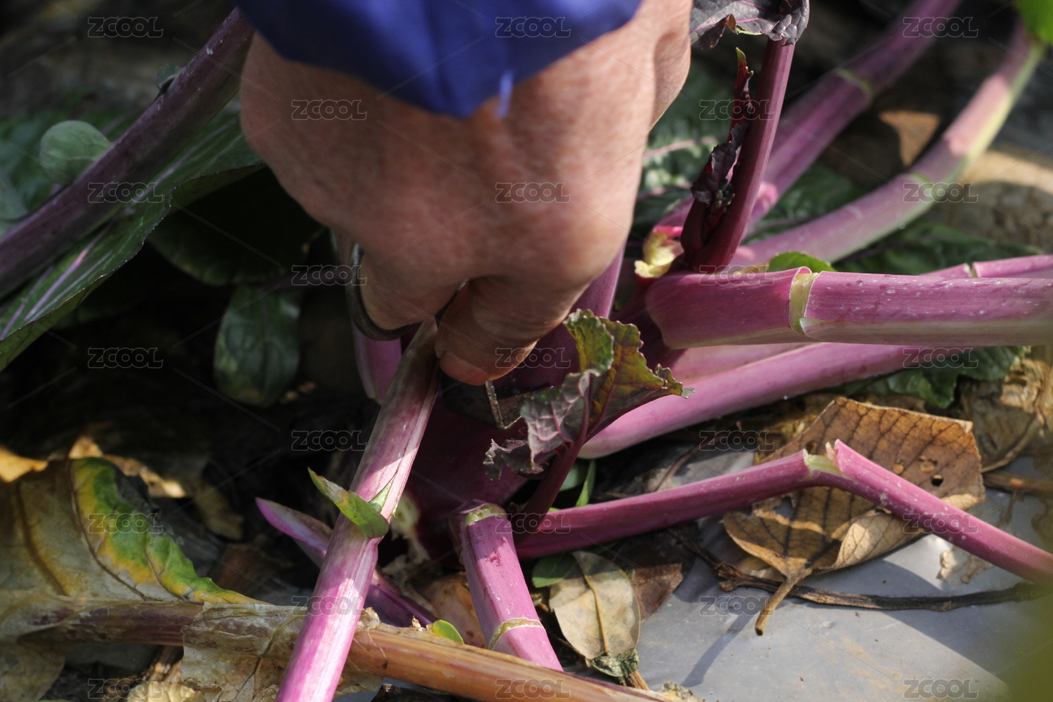 采摘洪山菜苔的手部特寫