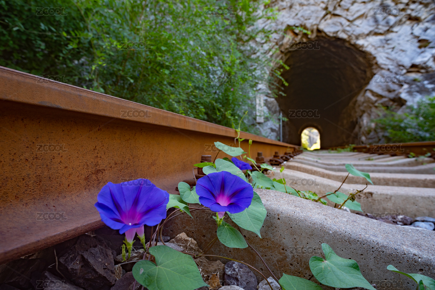 北京門頭溝京門鐵路遺址鐵軌牽牛花