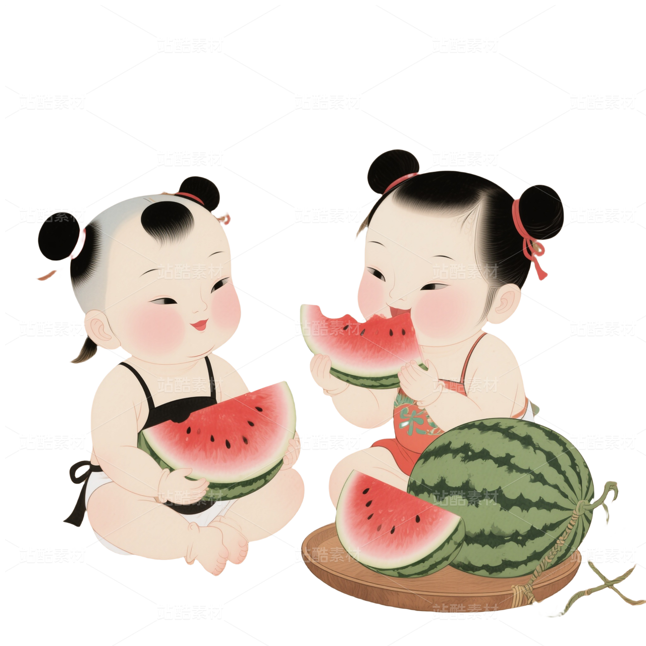 大暑免摳圖插畫吃西瓜的女孩