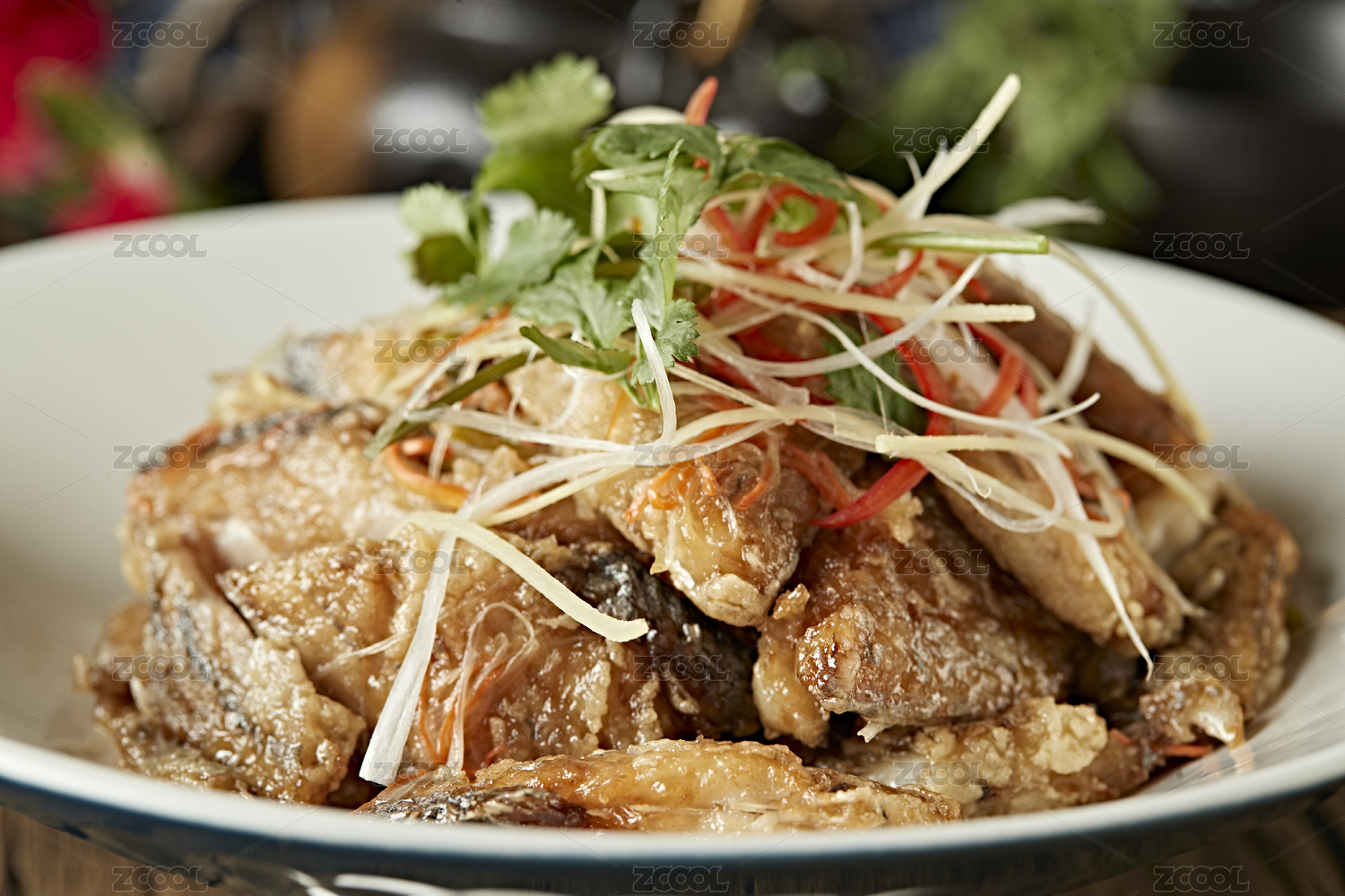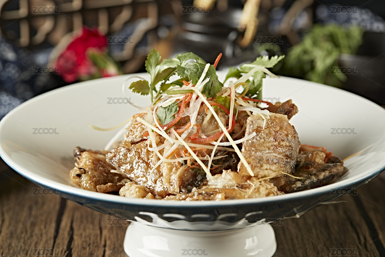 盛放在白色瓷盤里的中國家常菜燜酥帶魚