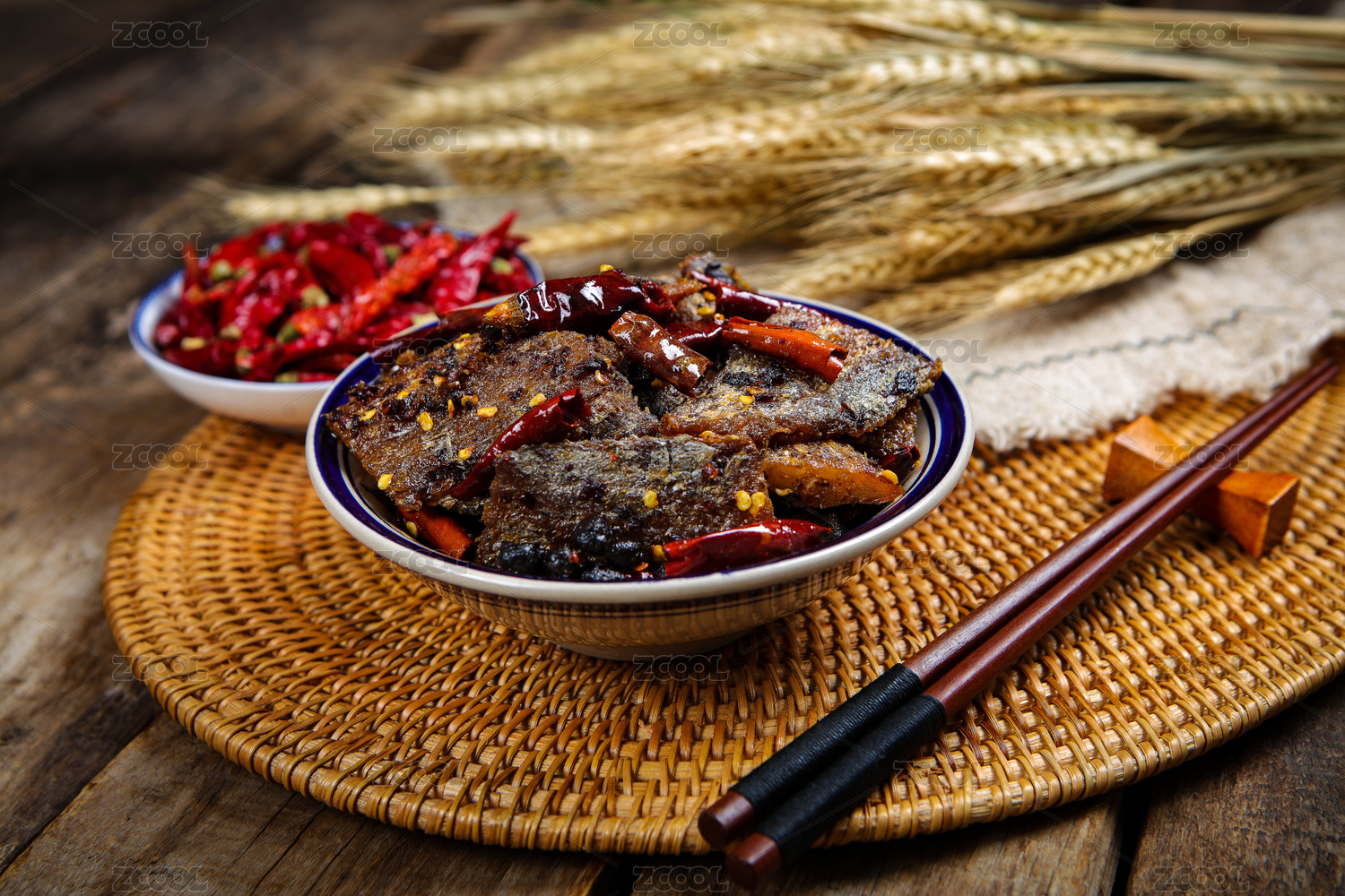 黑底上放著一盤秘制酥帶魚和筷子上夾著帶魚