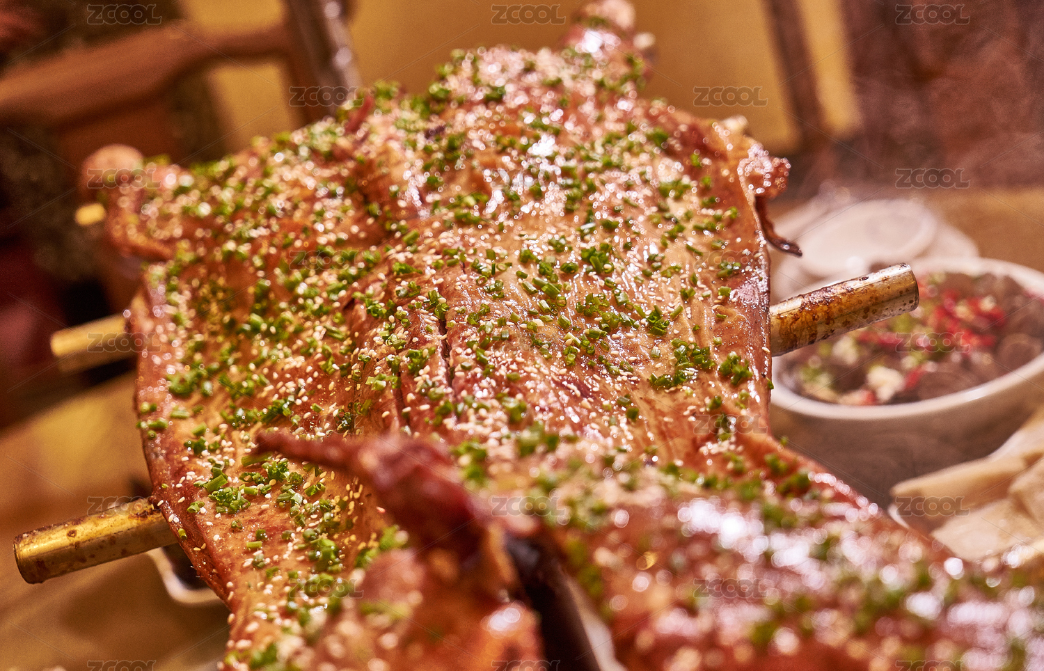餐桌上灑滿香料的烤全羊