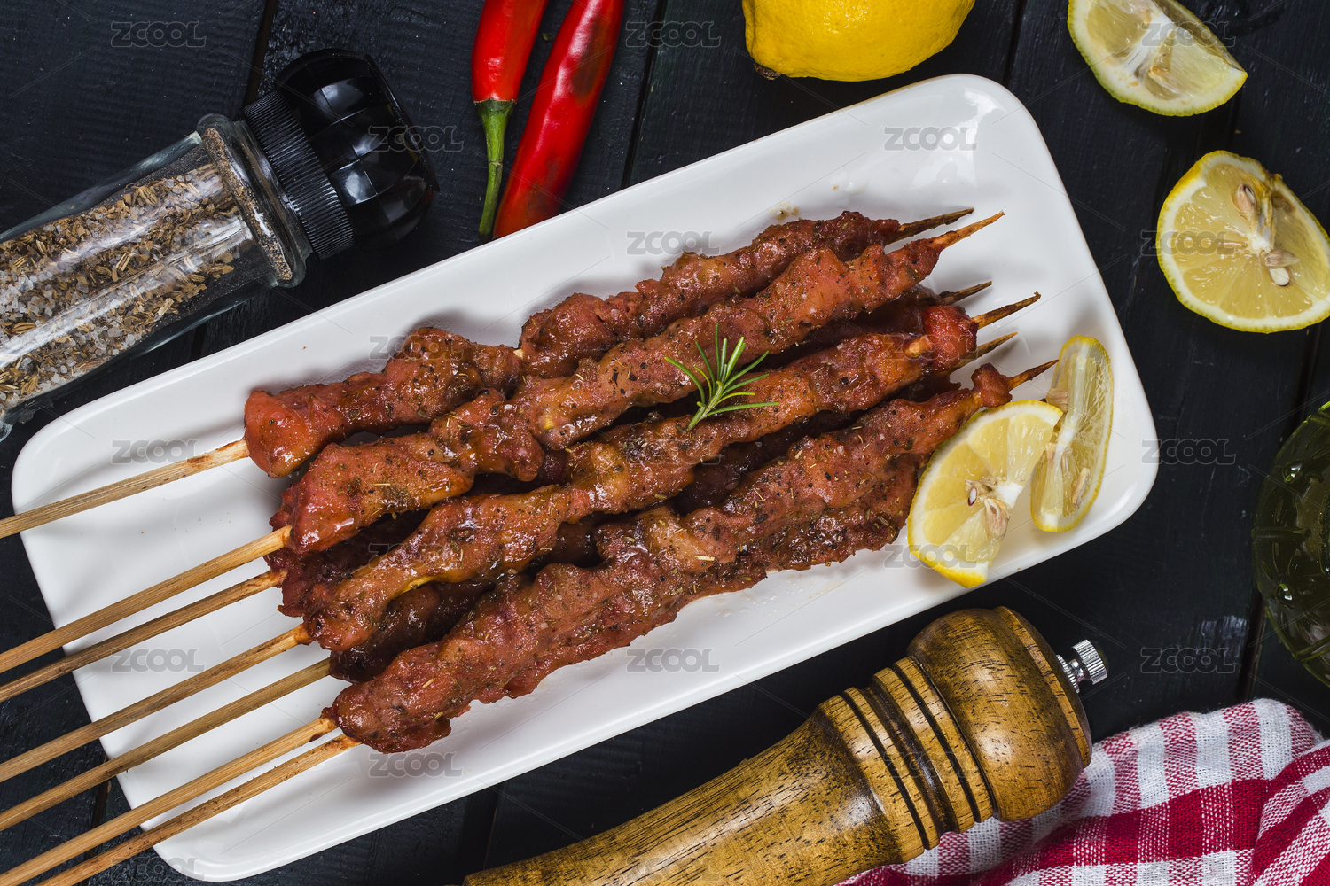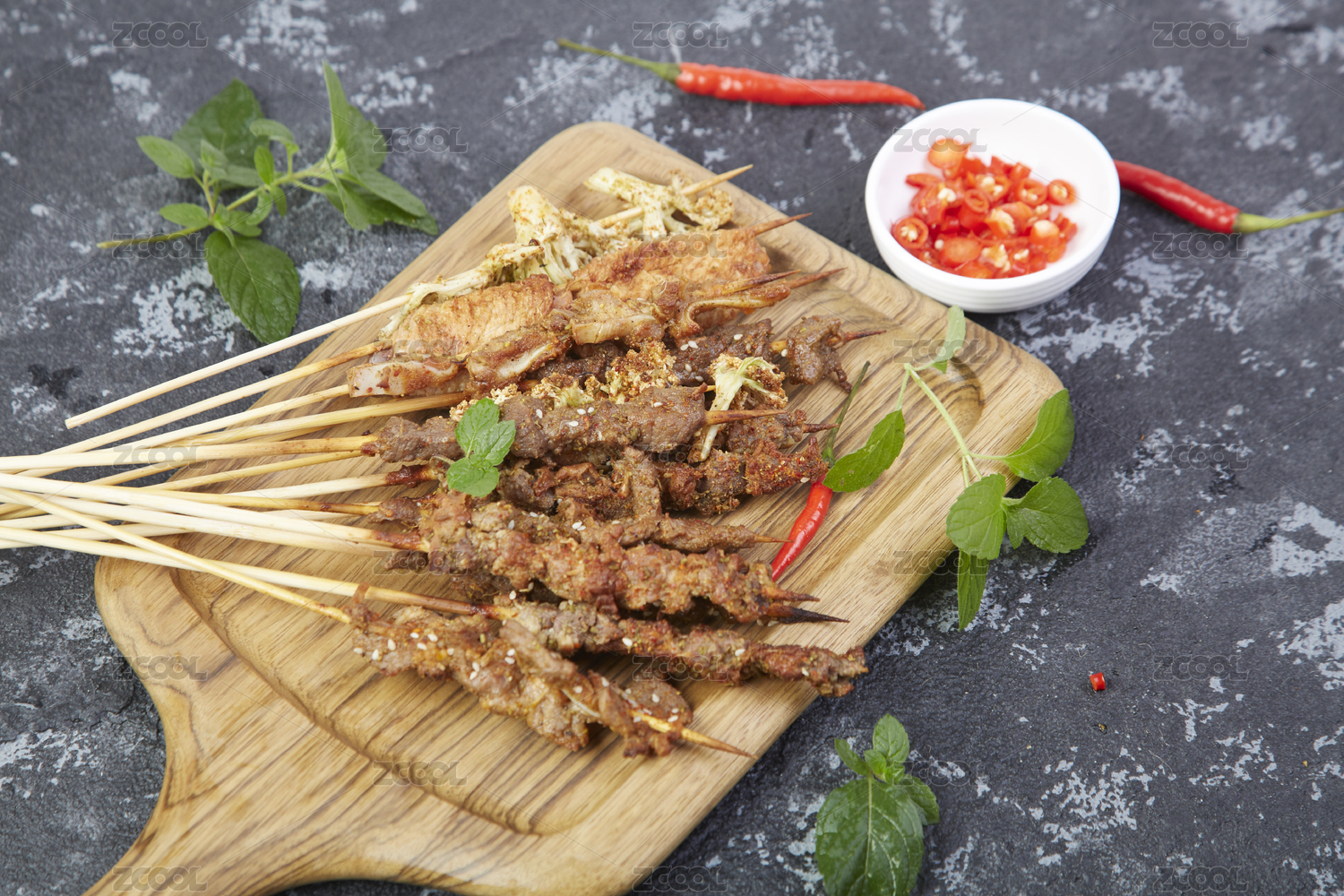 放在砧板上的美食羊肉串