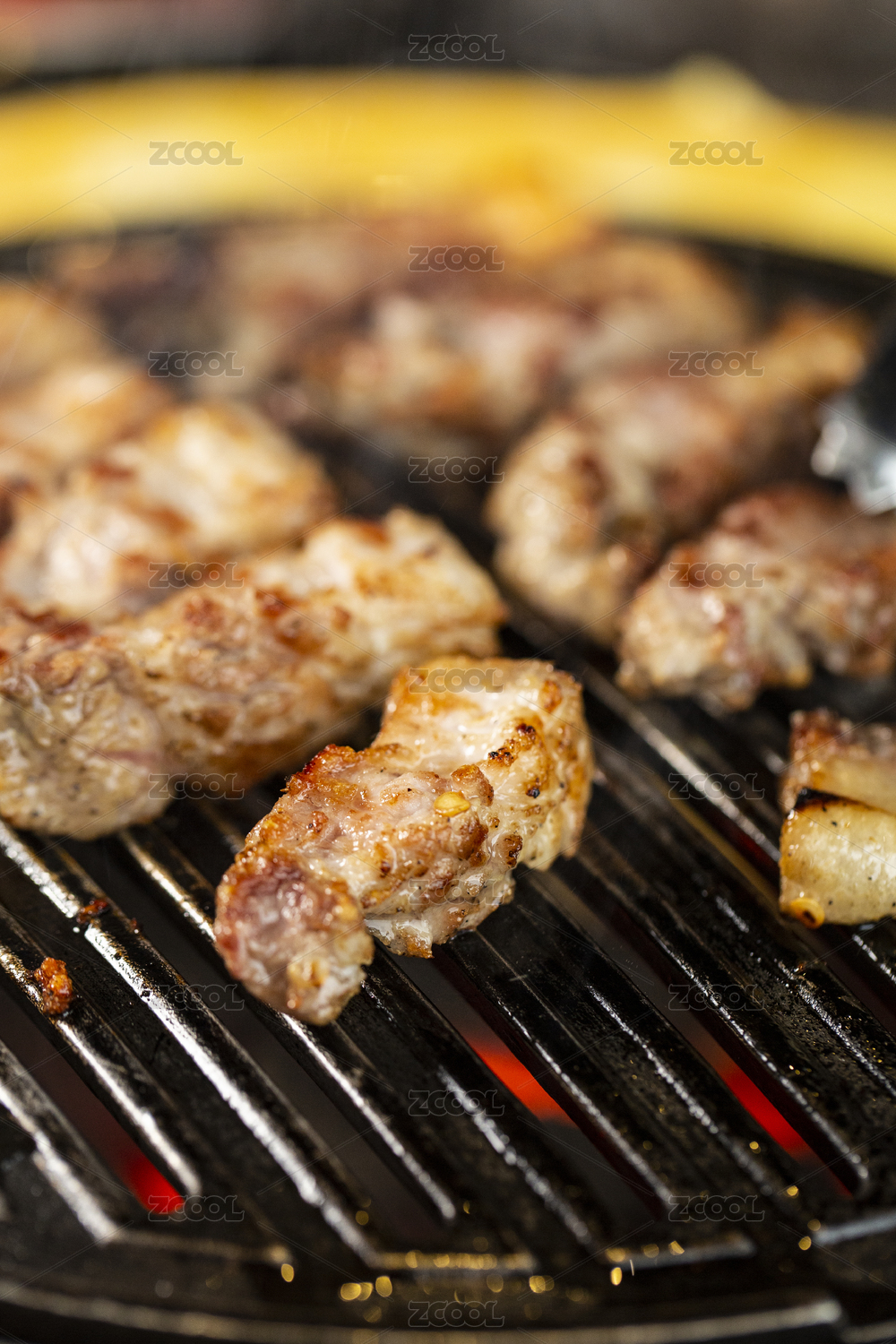 放在碳火上烤的韓國料理五花肉