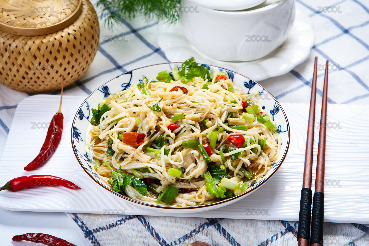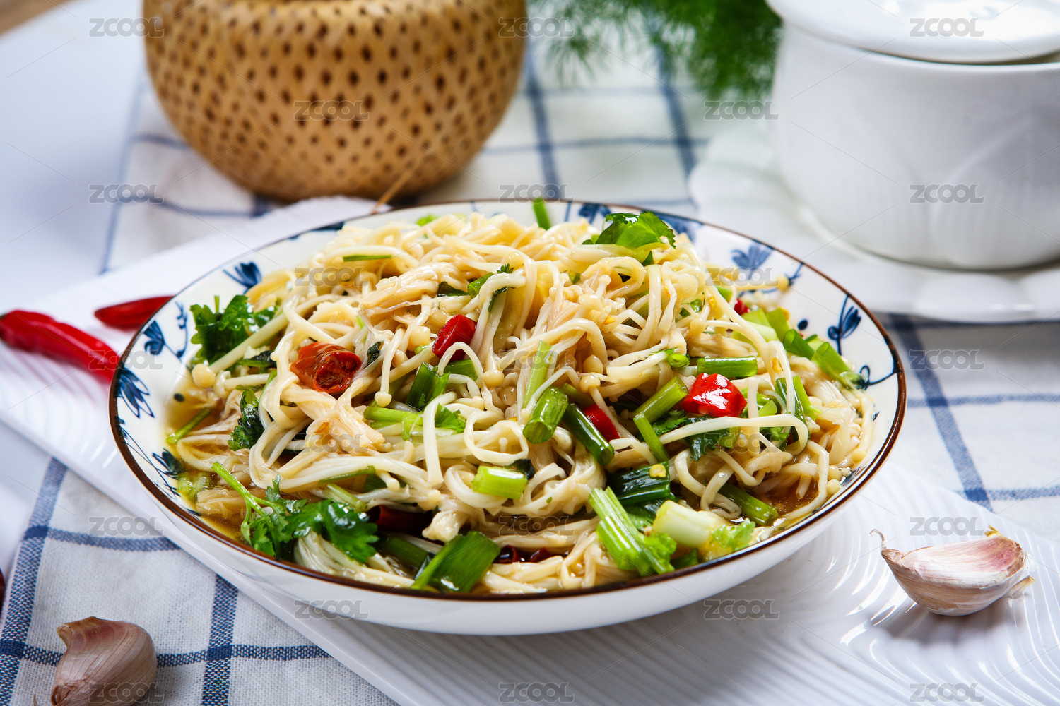 爽口涼拌菜小蔥香菜辣椒涼拌金針菇