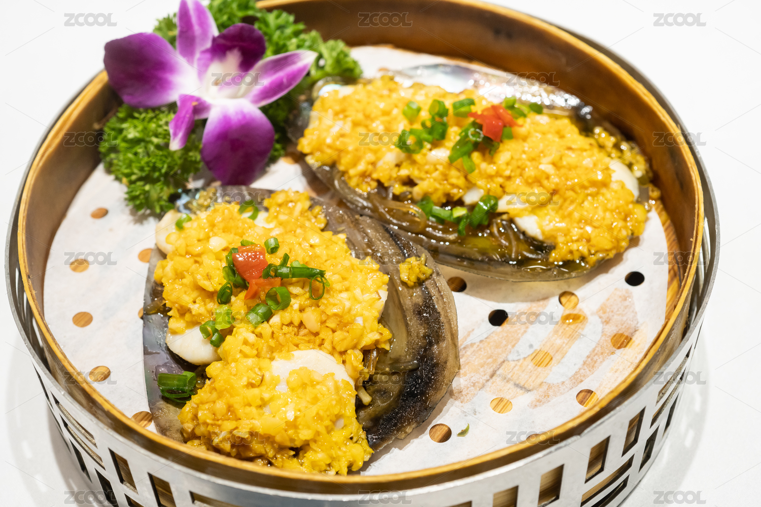 蒸籠里的清蒸海鮮蒜蓉帶子