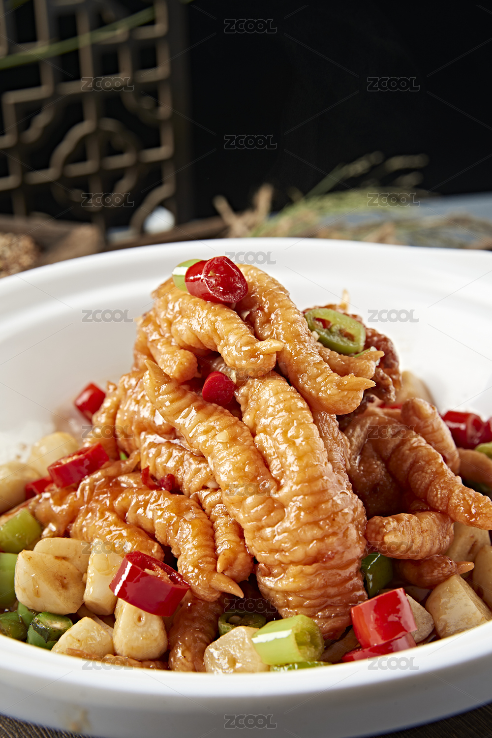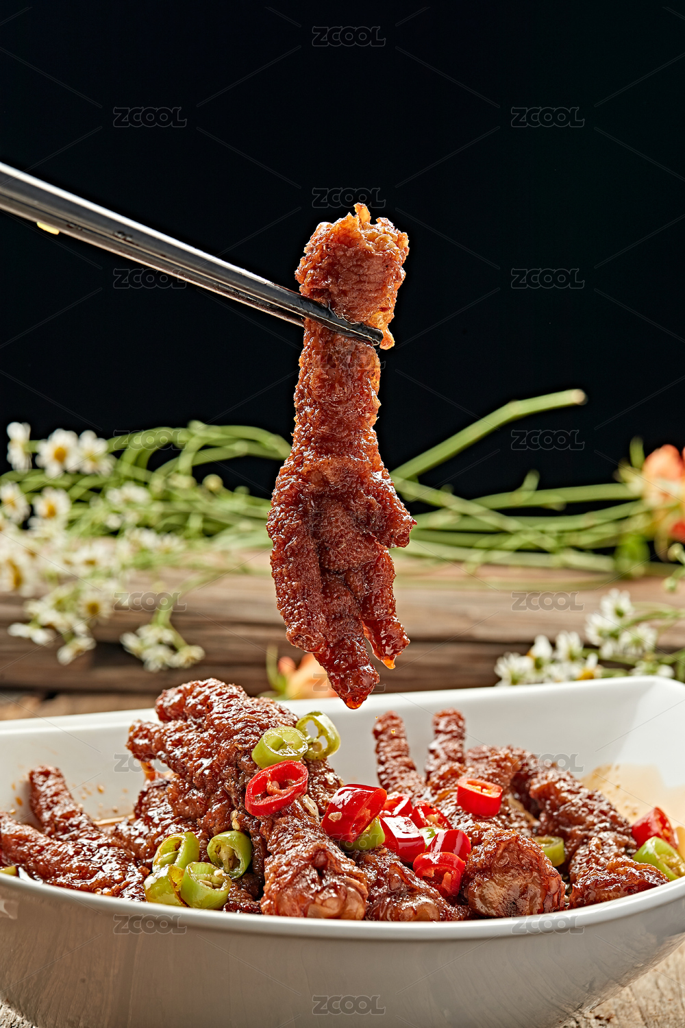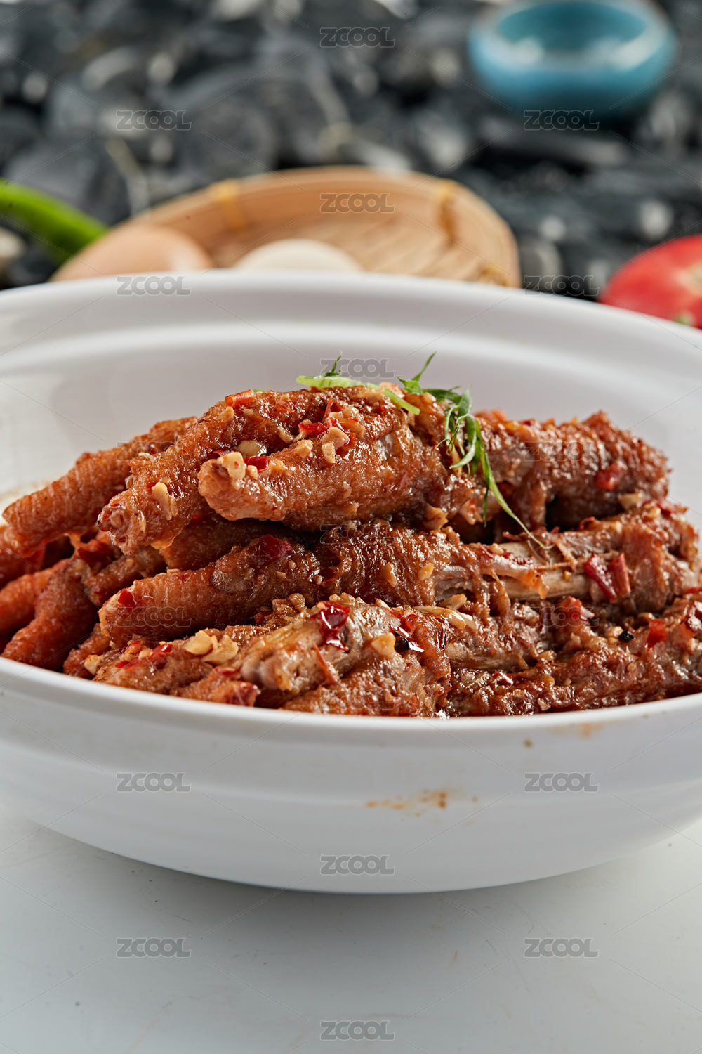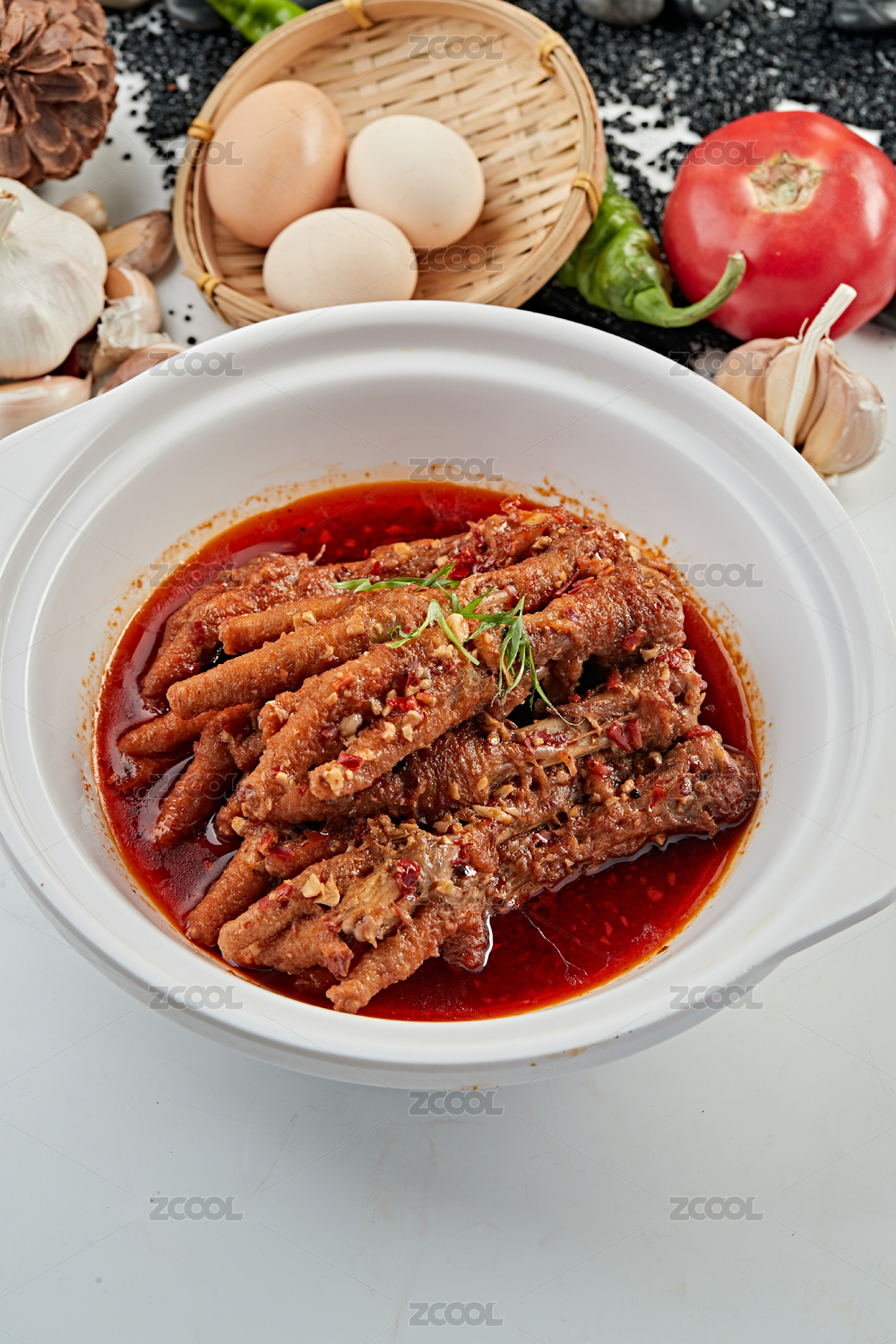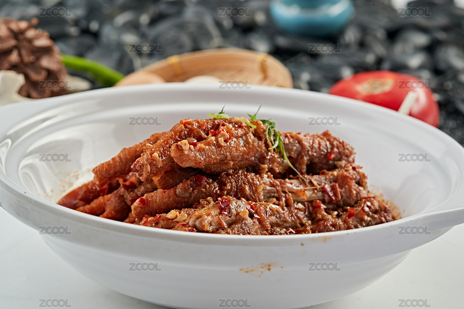 一盤紅色紅燒舉爪子放在木質(zhì)托盤上