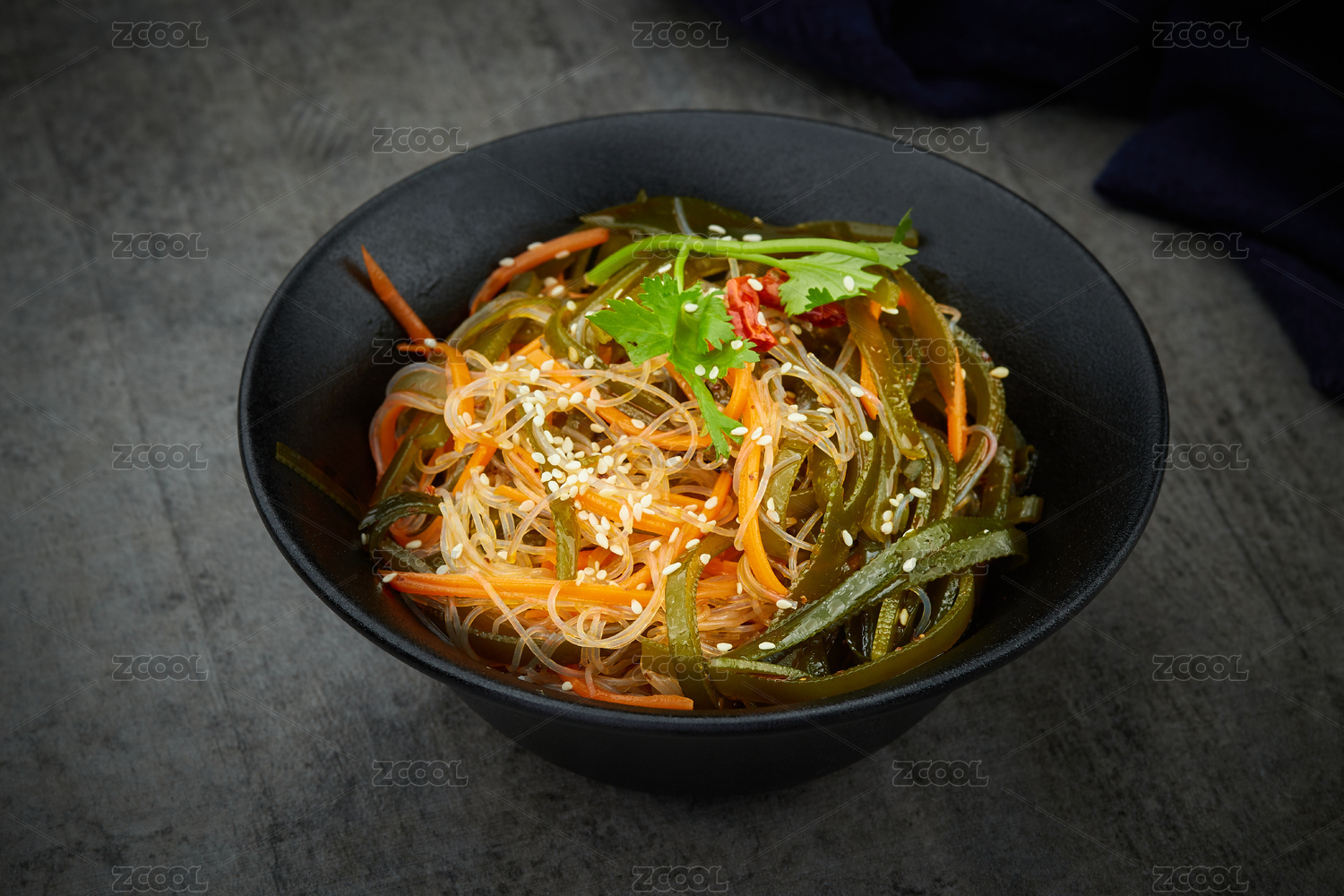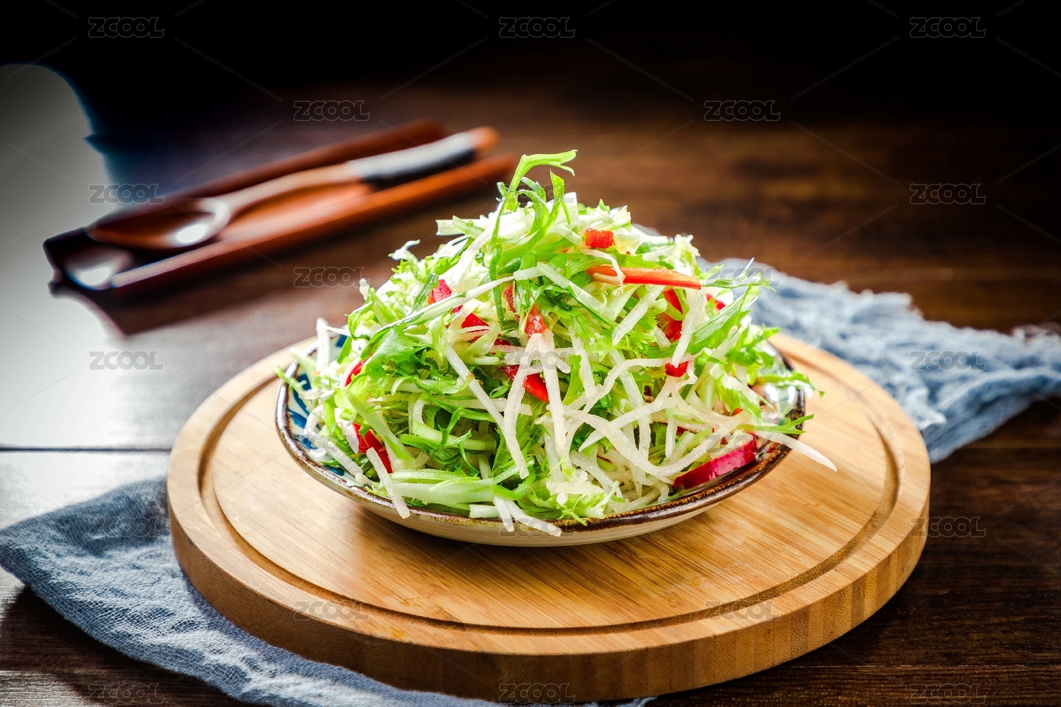 餐布上盤子里的涼拌三絲
