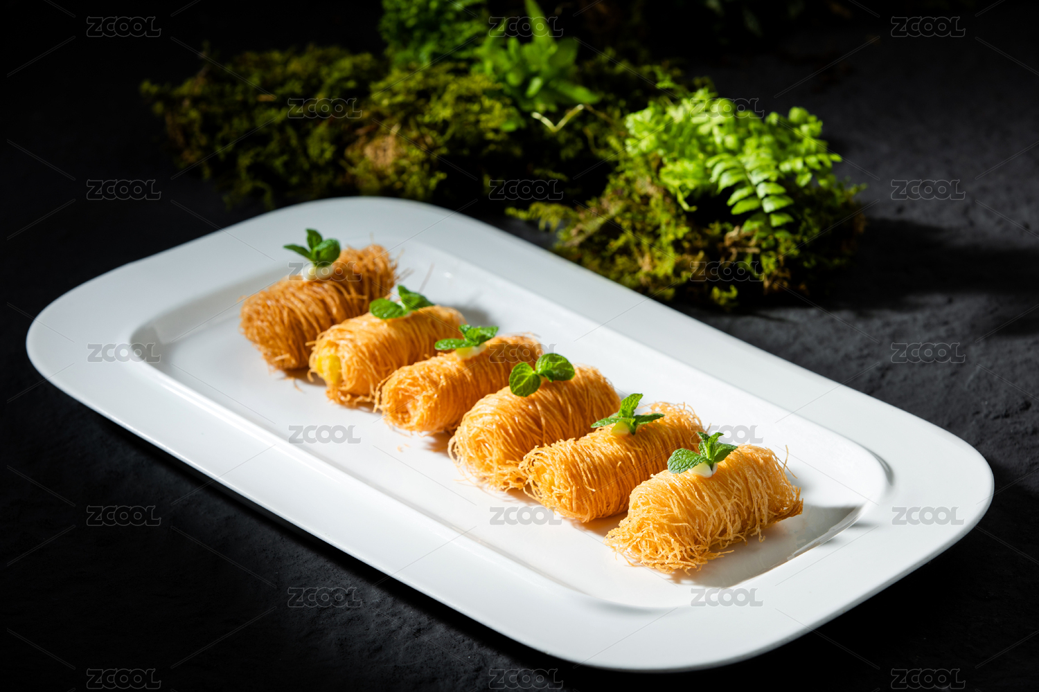 白色瓷盤裝的金絲油炸大蝦球