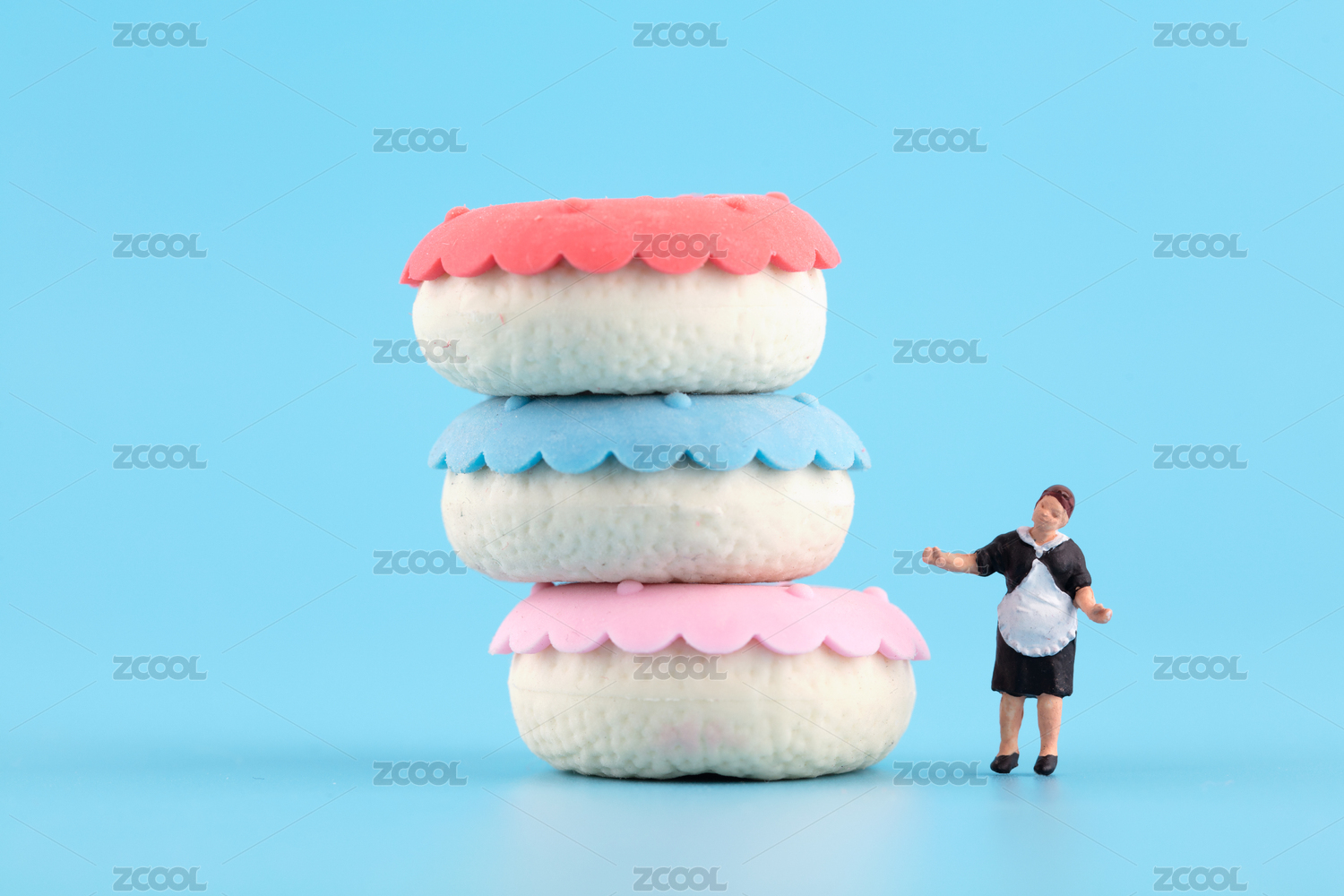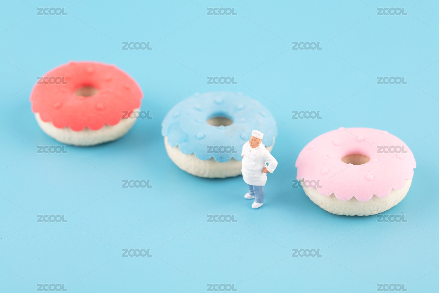 藍(lán)背景上的甜甜圈和面點(diǎn)師