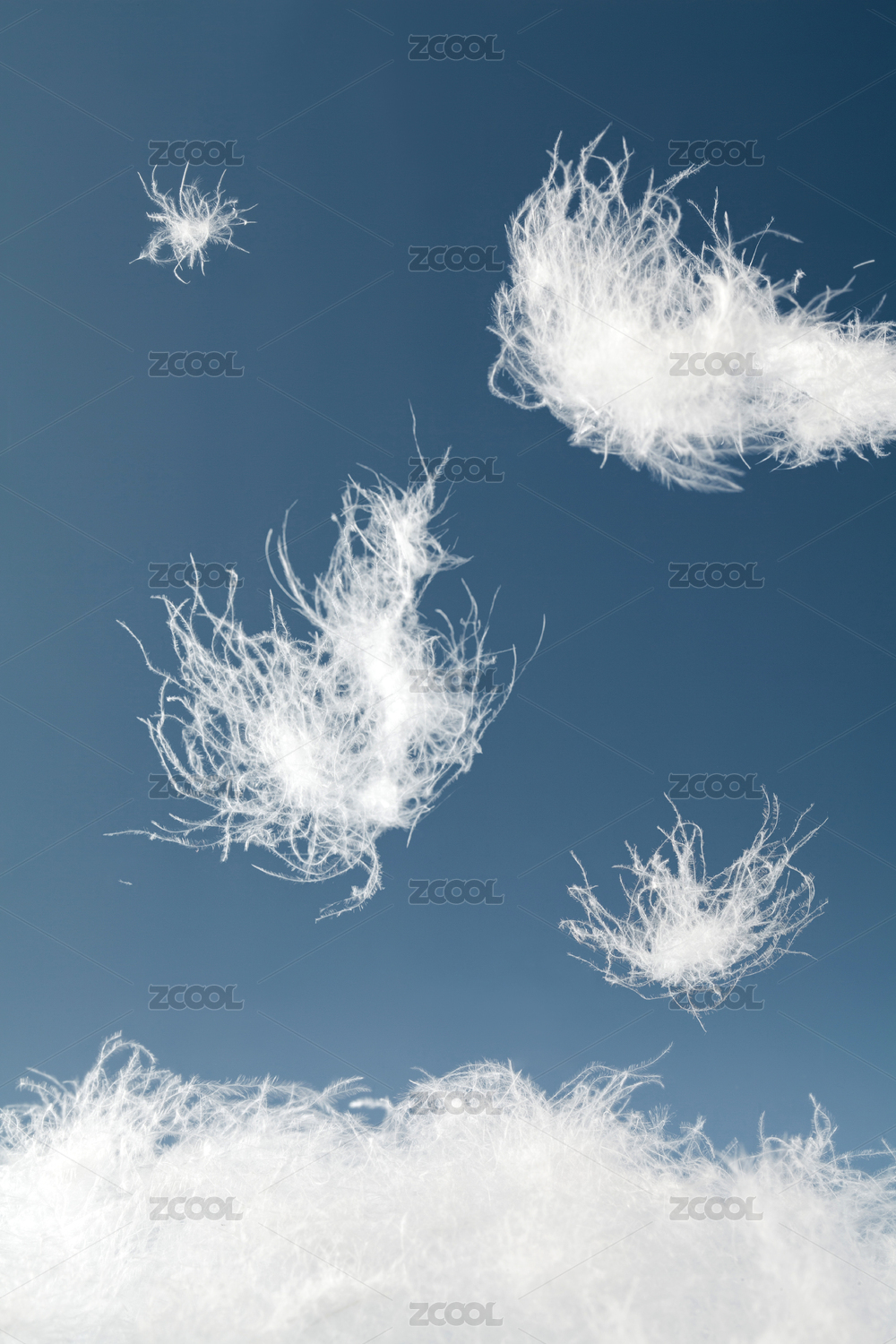 暗藍(lán)背景下飄落的幾朵羽絨素材