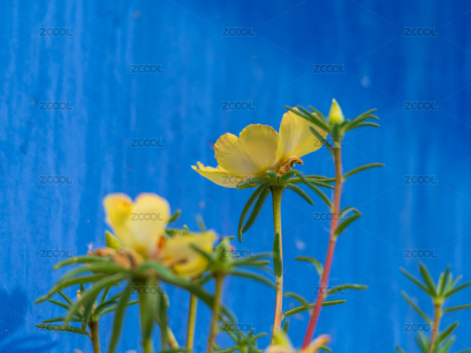 藍(lán)背景下綻放的黃色太陽花
